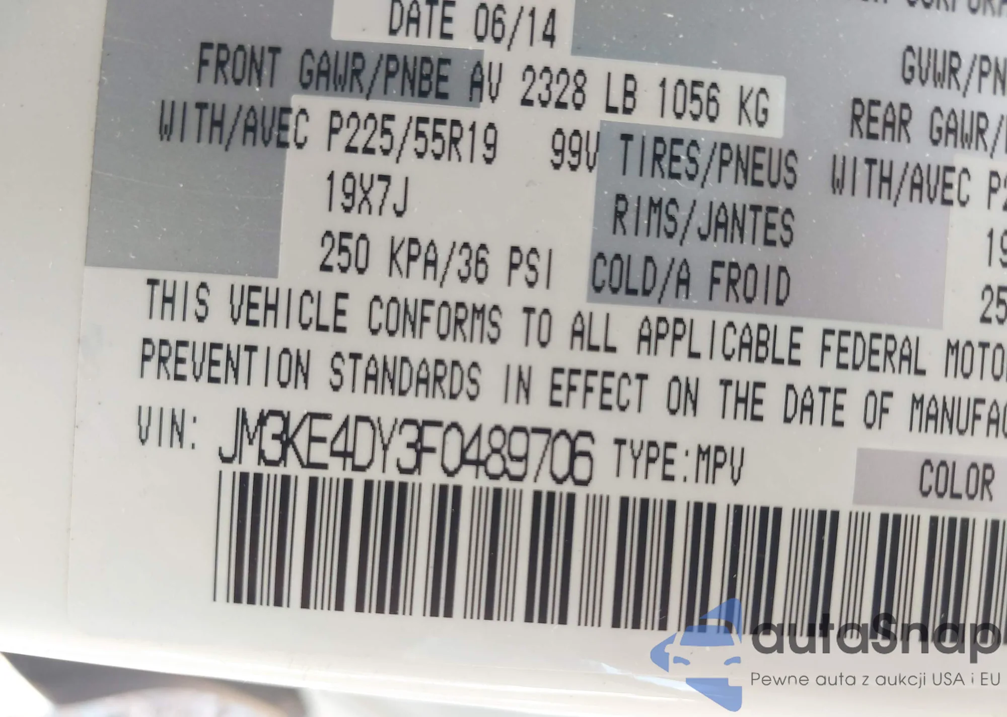 LOT: 39799018 VIN: JM3KE4DY3F0489706