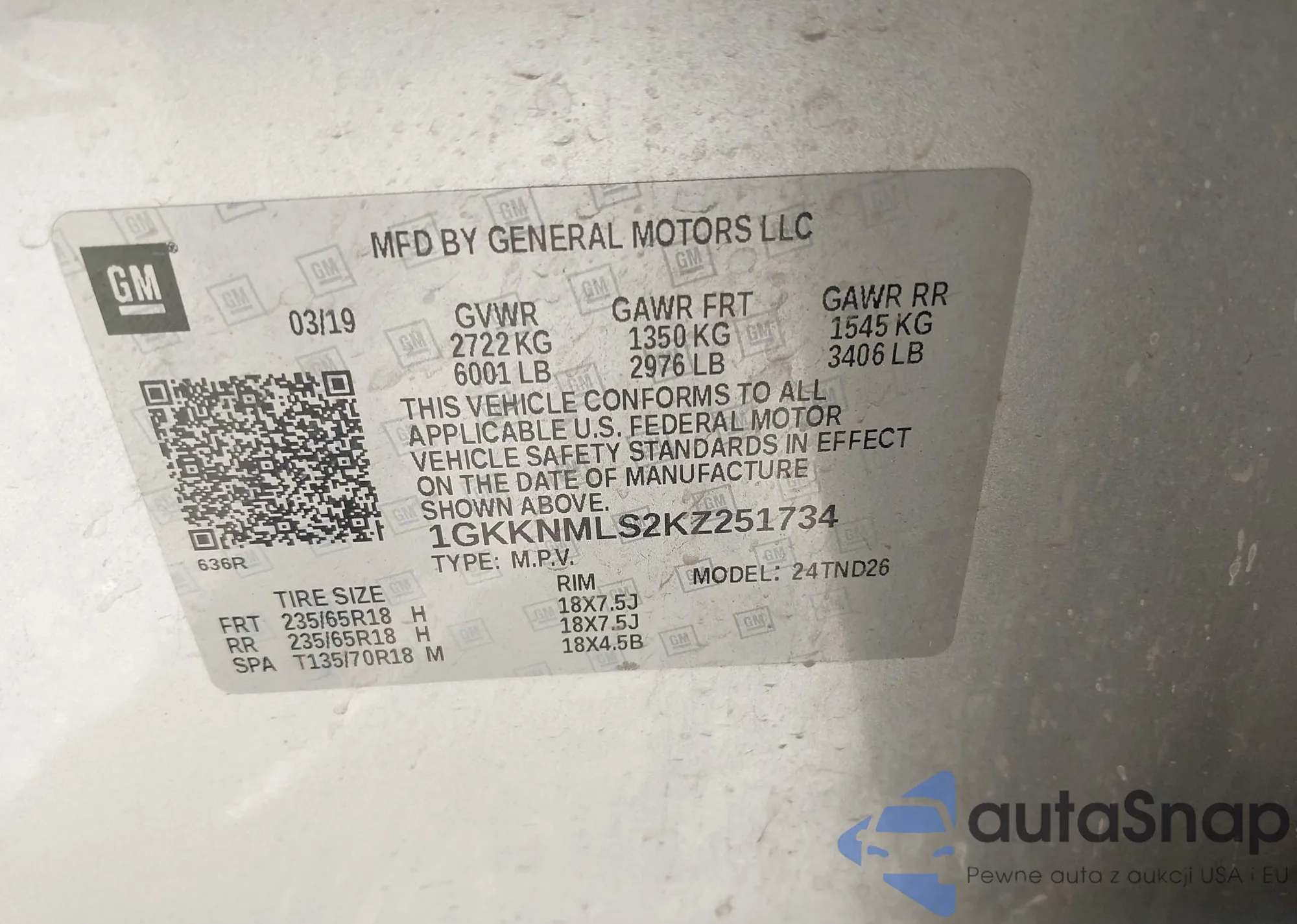 LOT: 43265982 VIN: 3N6CM0KNXKK710154