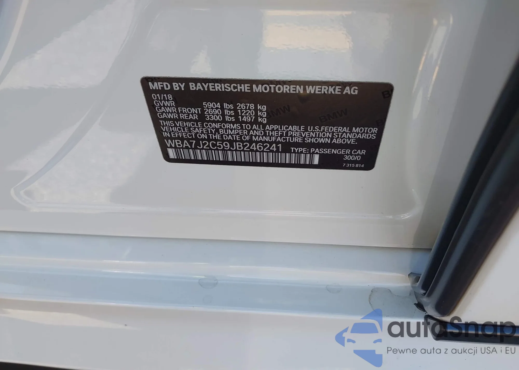 LOT: 43140604 VIN: WBA7J2C59JB246241
