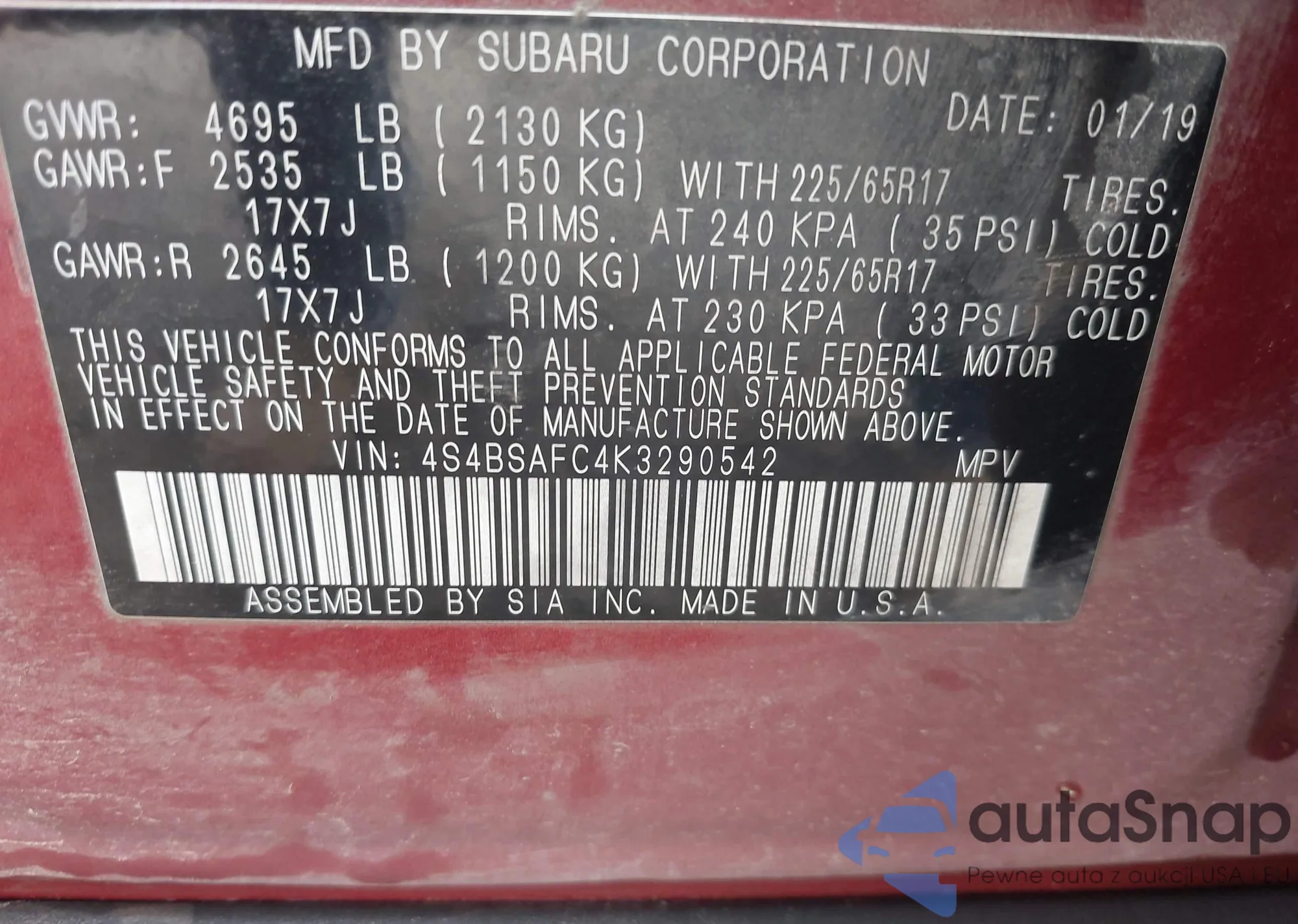 • VIN WBA7J2C59JB246241