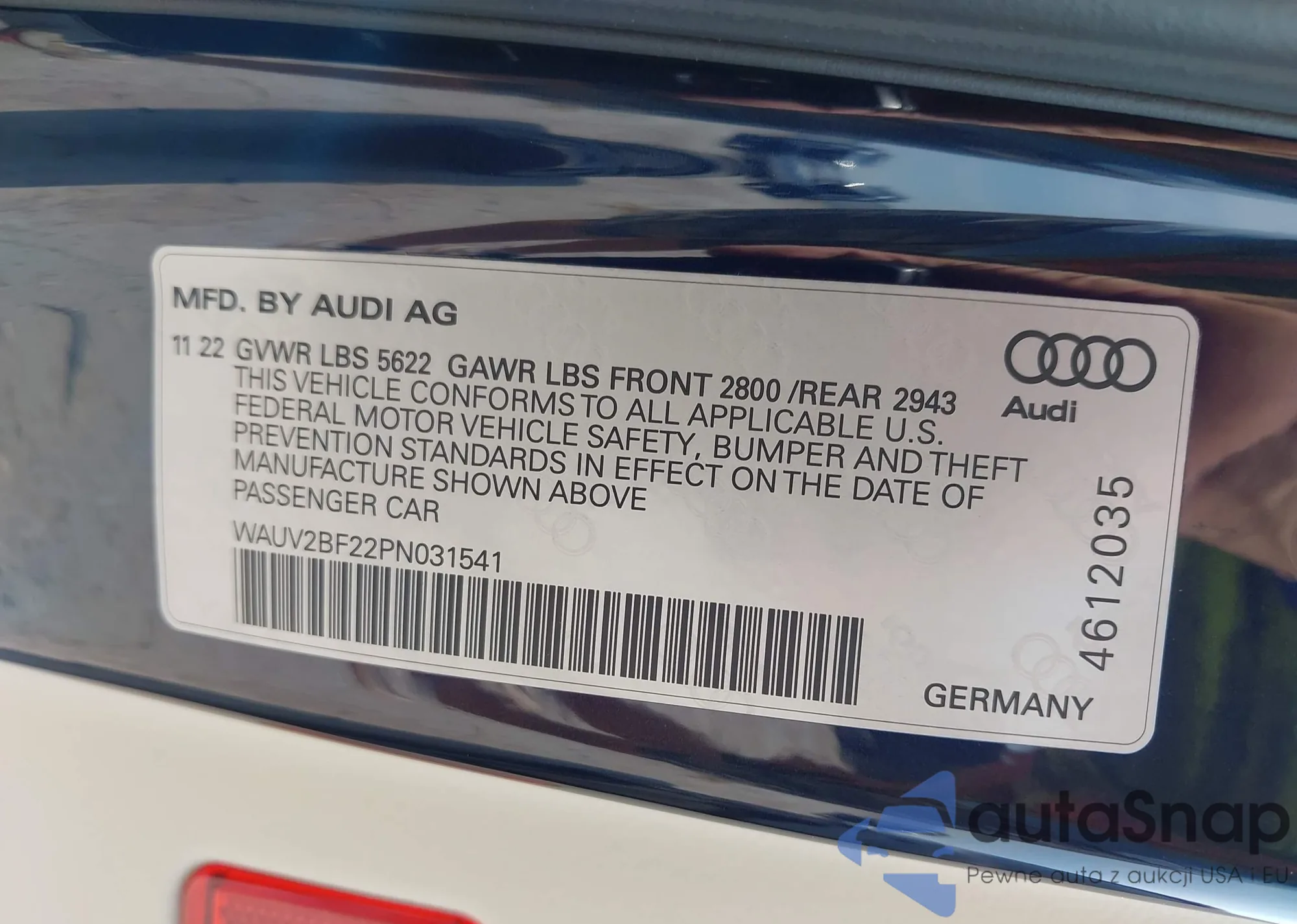 • VIN WAUV2BF22PN031541