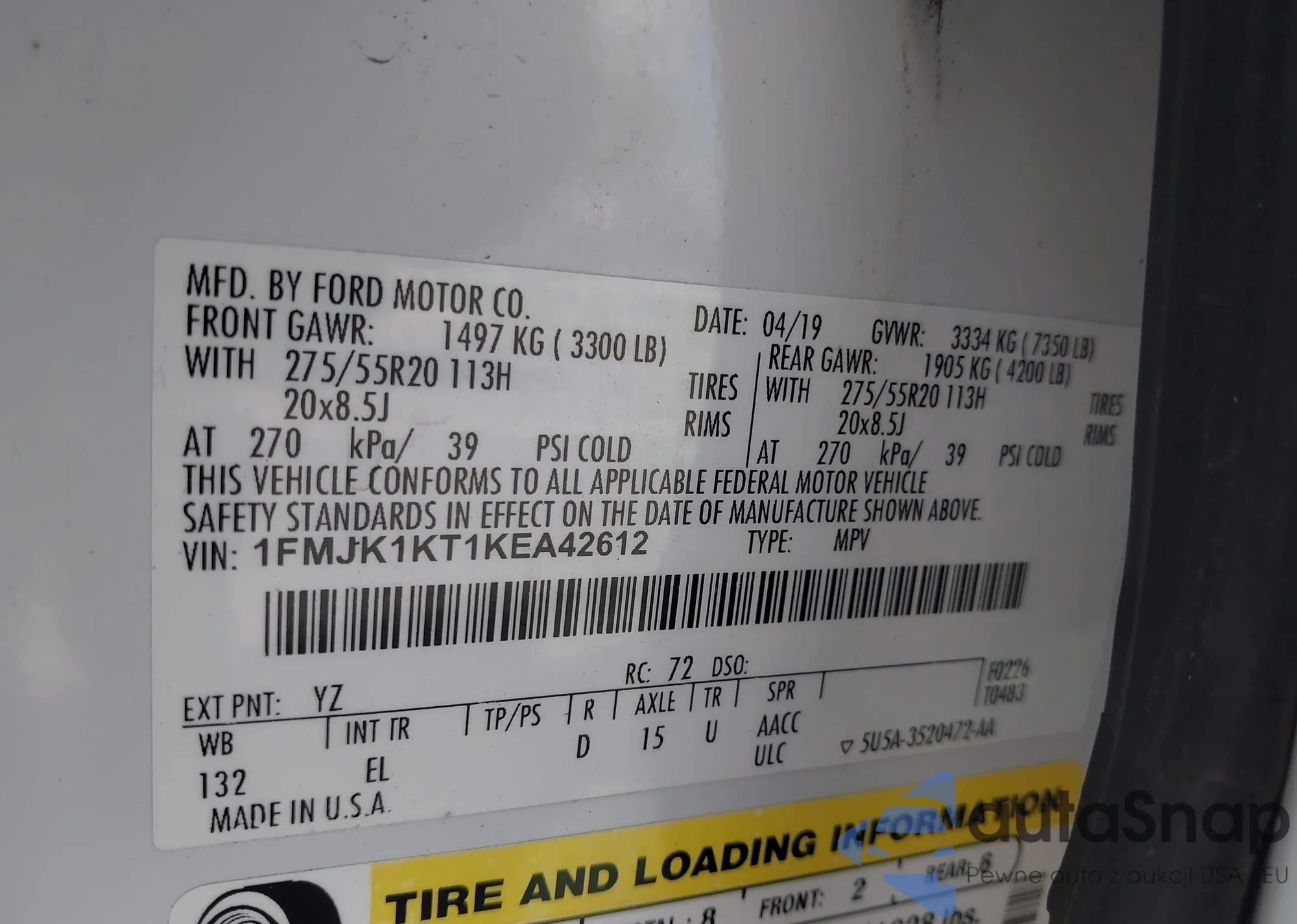 LOT: 43202563 VIN: 1FMJK1KT1KEA42612