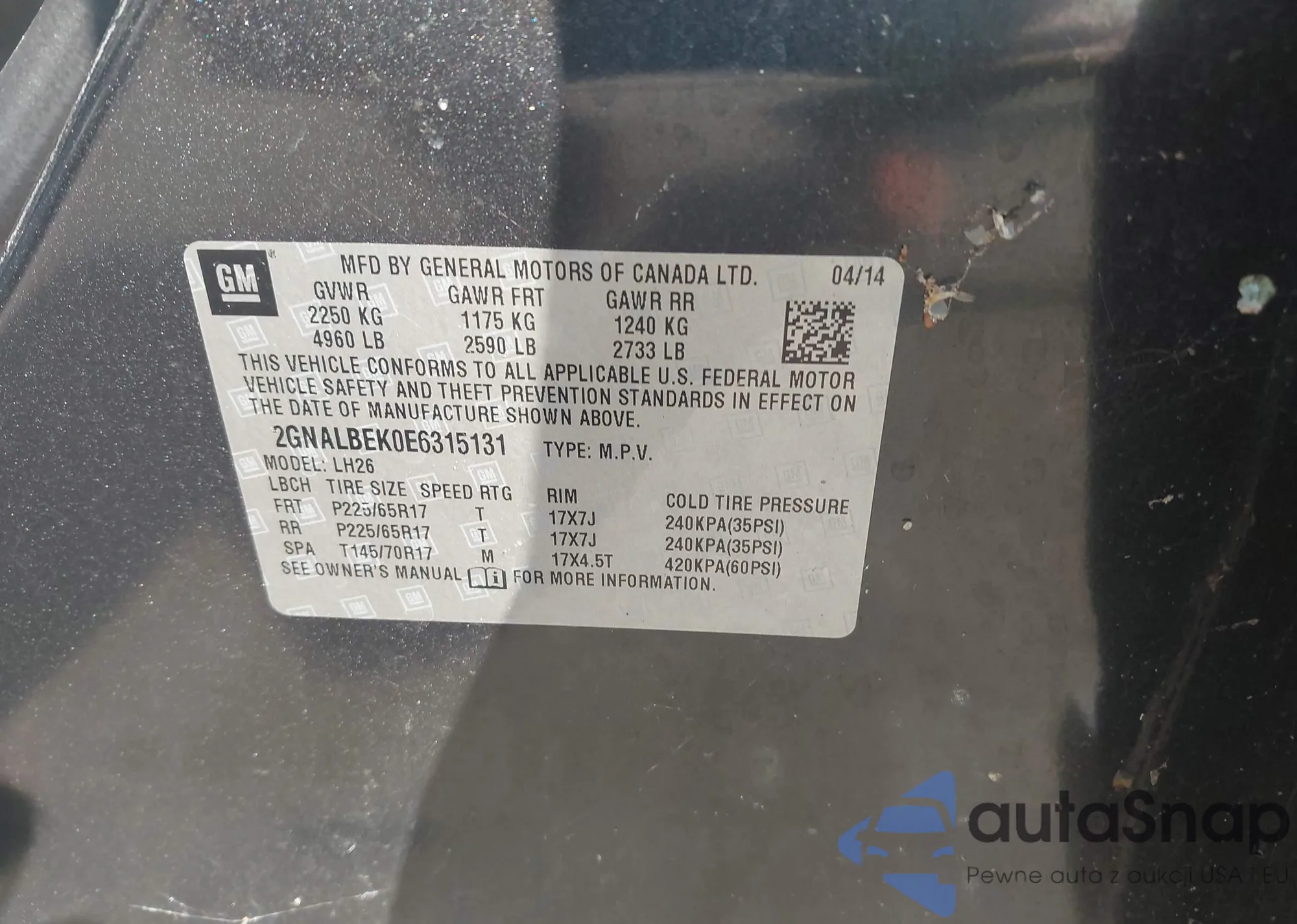 • VIN 1G4GB5G38EF238832