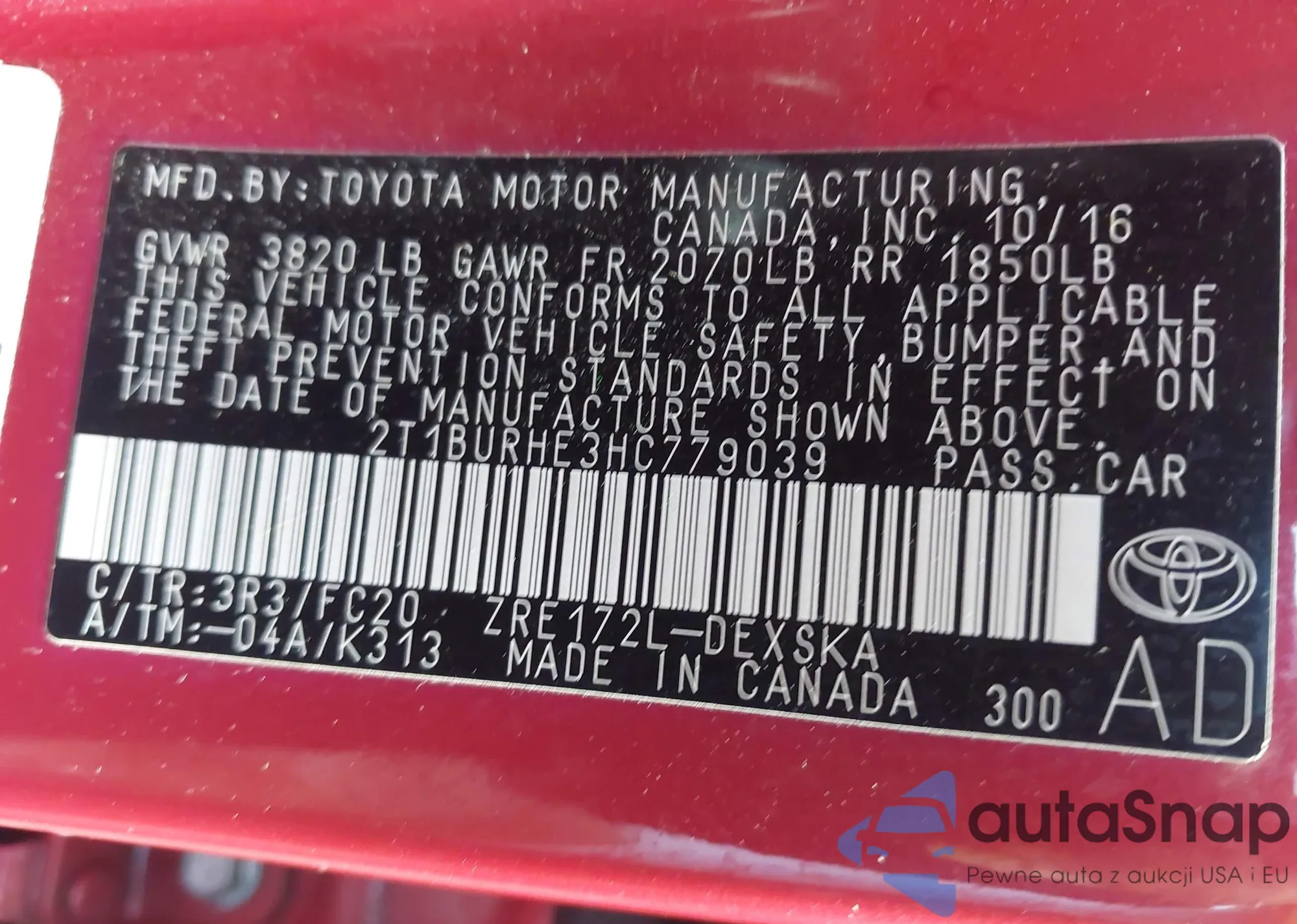 • VIN 2T1BURHE3HC779039