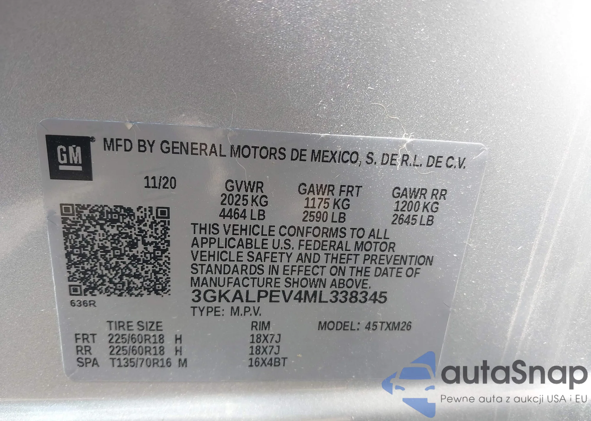 LOT: 43248528 VIN: 3GKALPEV4ML338345