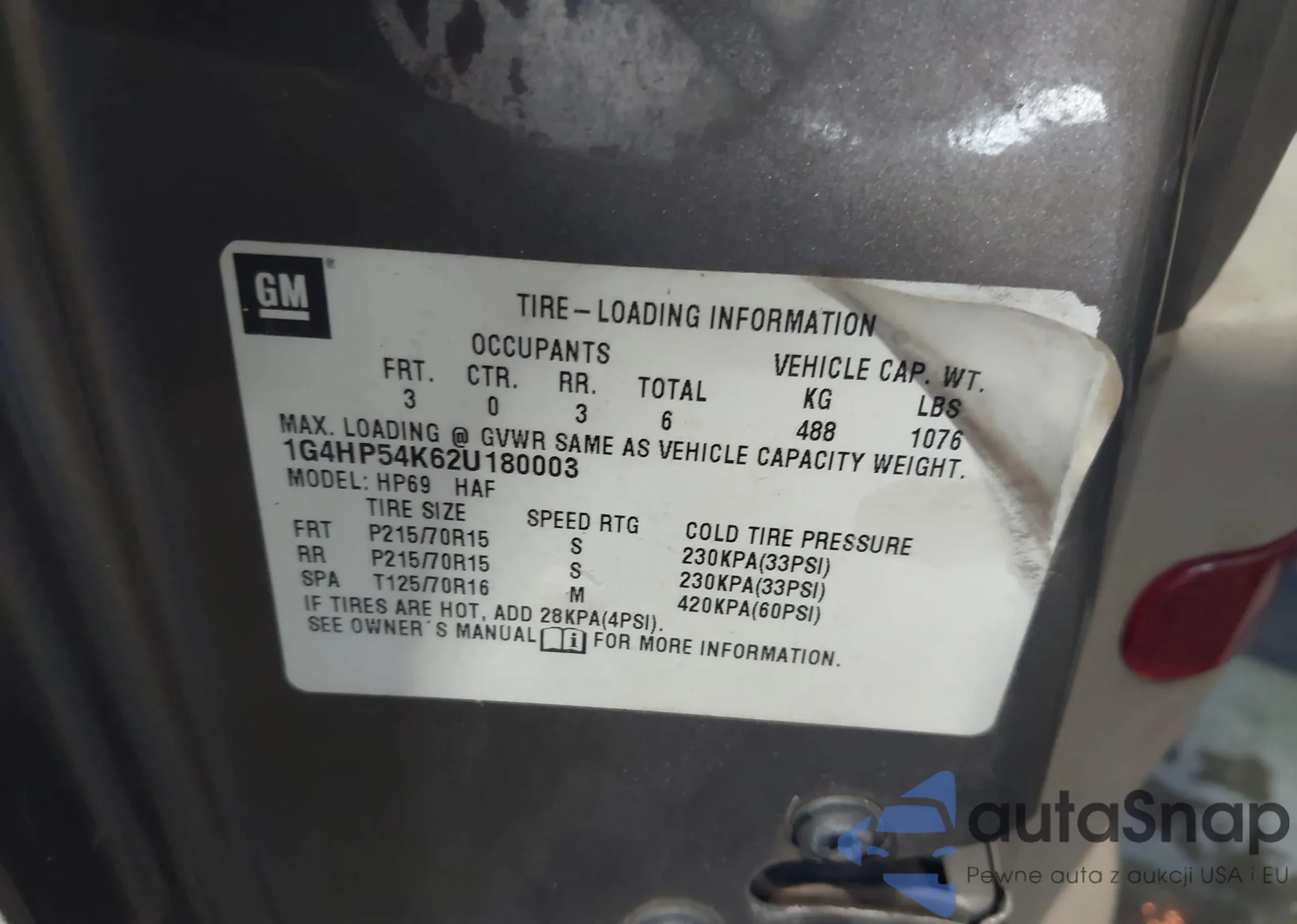 • VIN 1G4HP54K62U180003