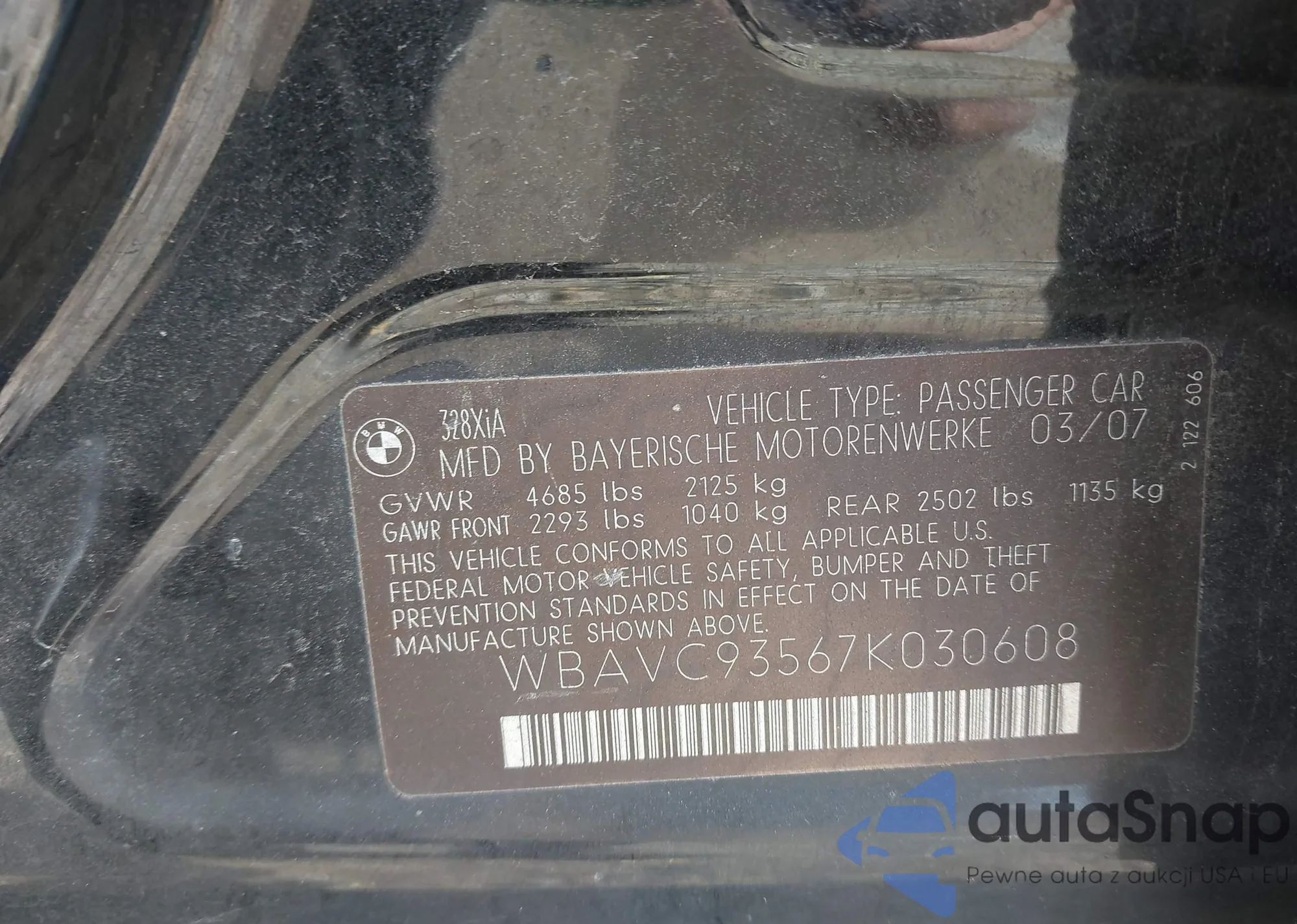 • VIN WBAVC93567K030608