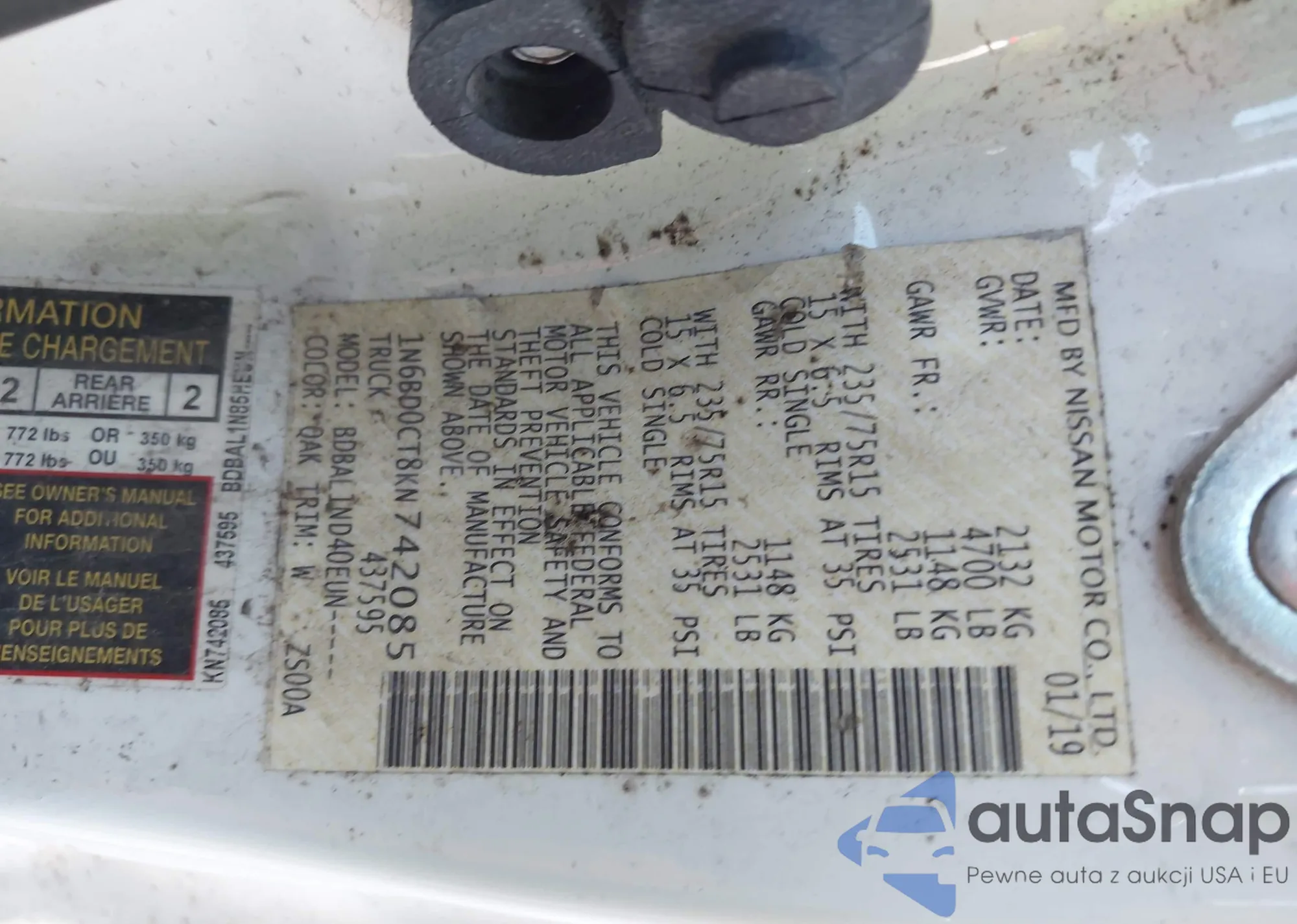 • VIN 1N6BD0CT8KN742085