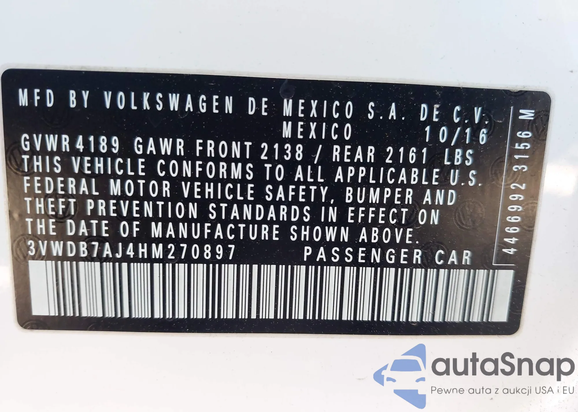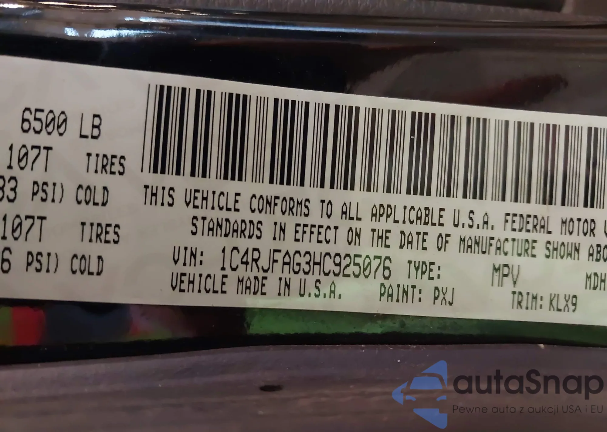 • VIN 1C4RJFAG3HC925076