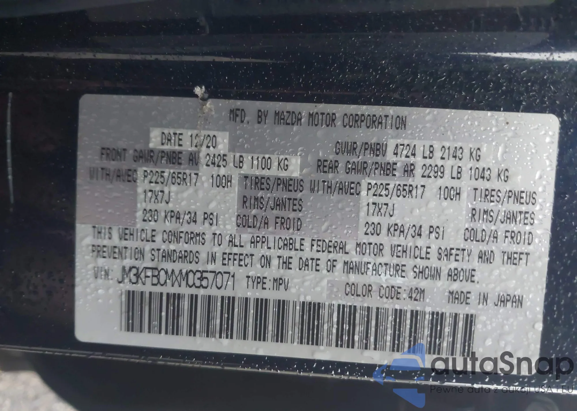 • VIN JM3KFBCMXM0357071