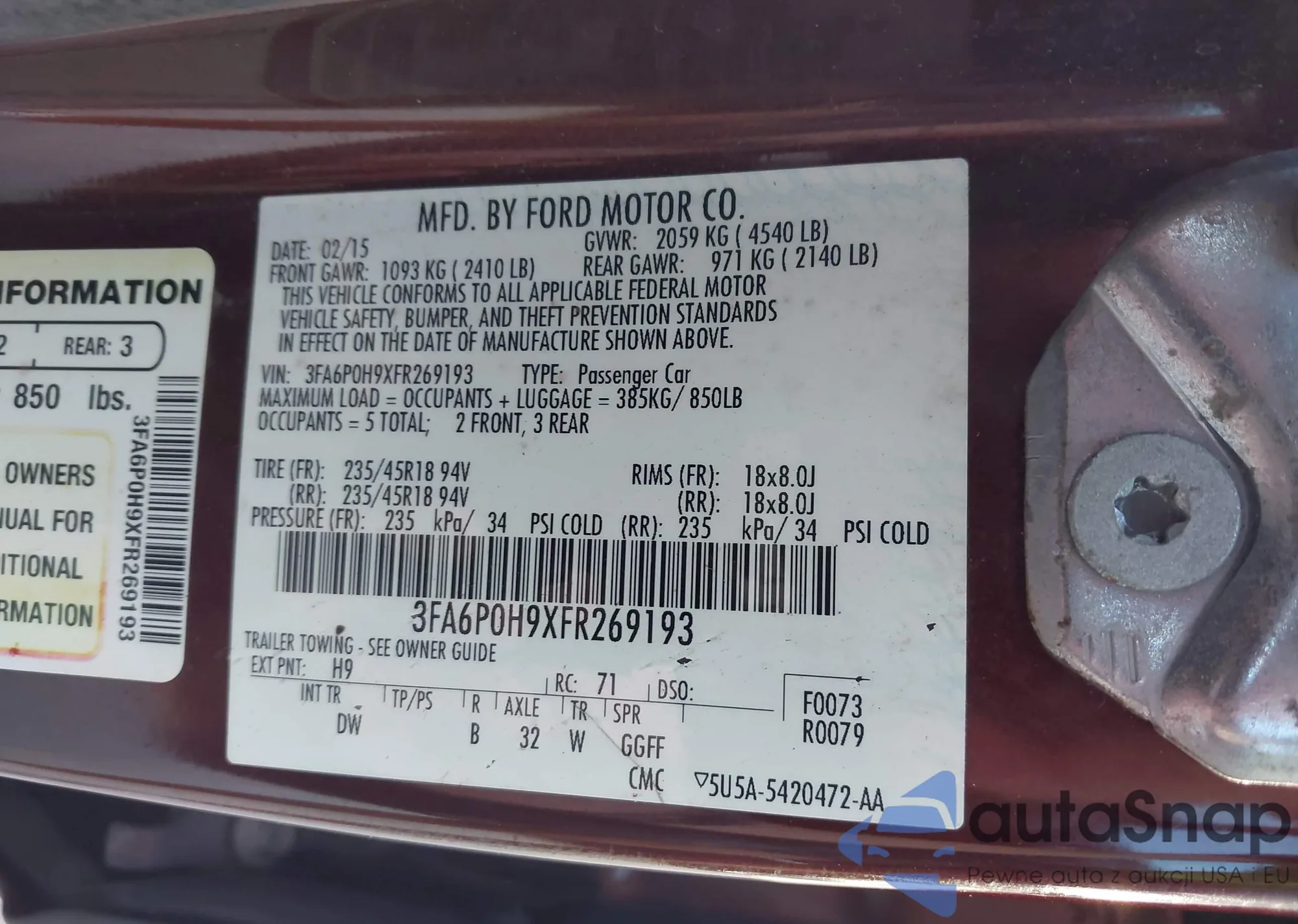 LOT: 43277383 VIN: JM3KFBCMXM0357071