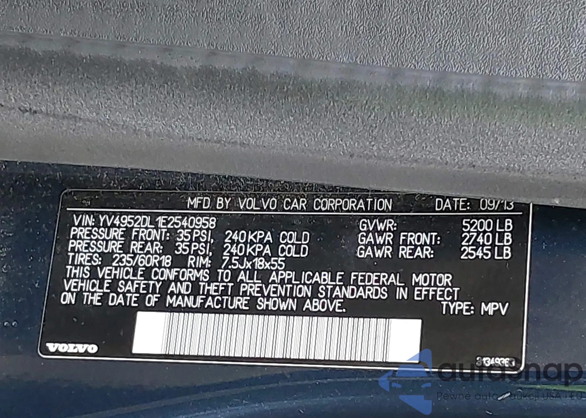 LOT: 43407559 VIN: YV4952DL1E2540958