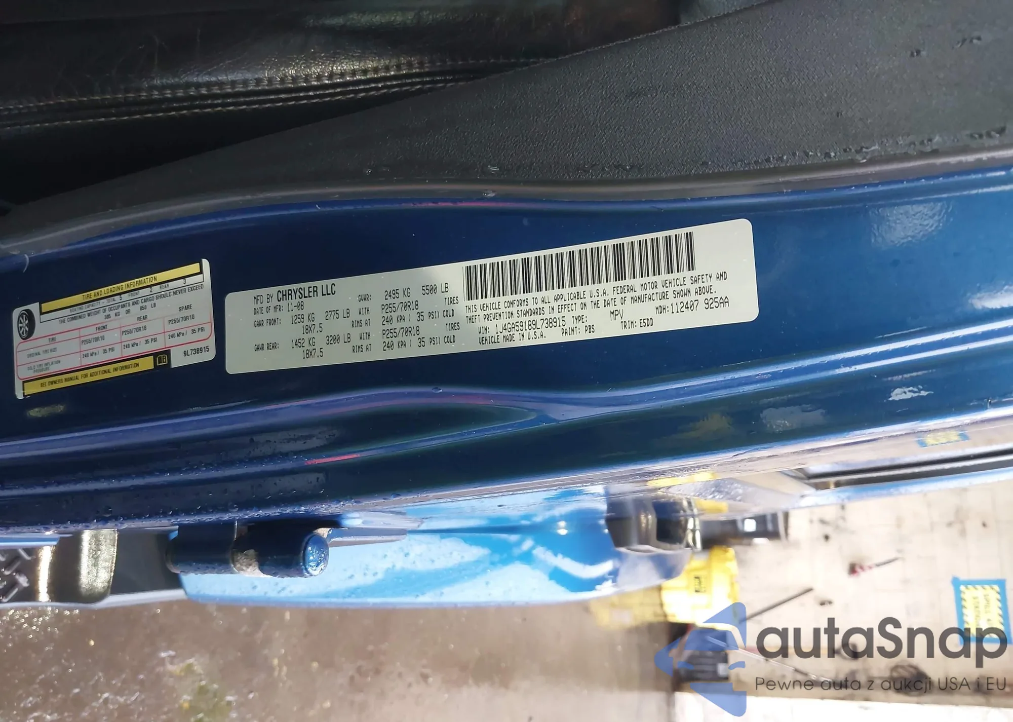 • VIN 1J4GA59189L738915