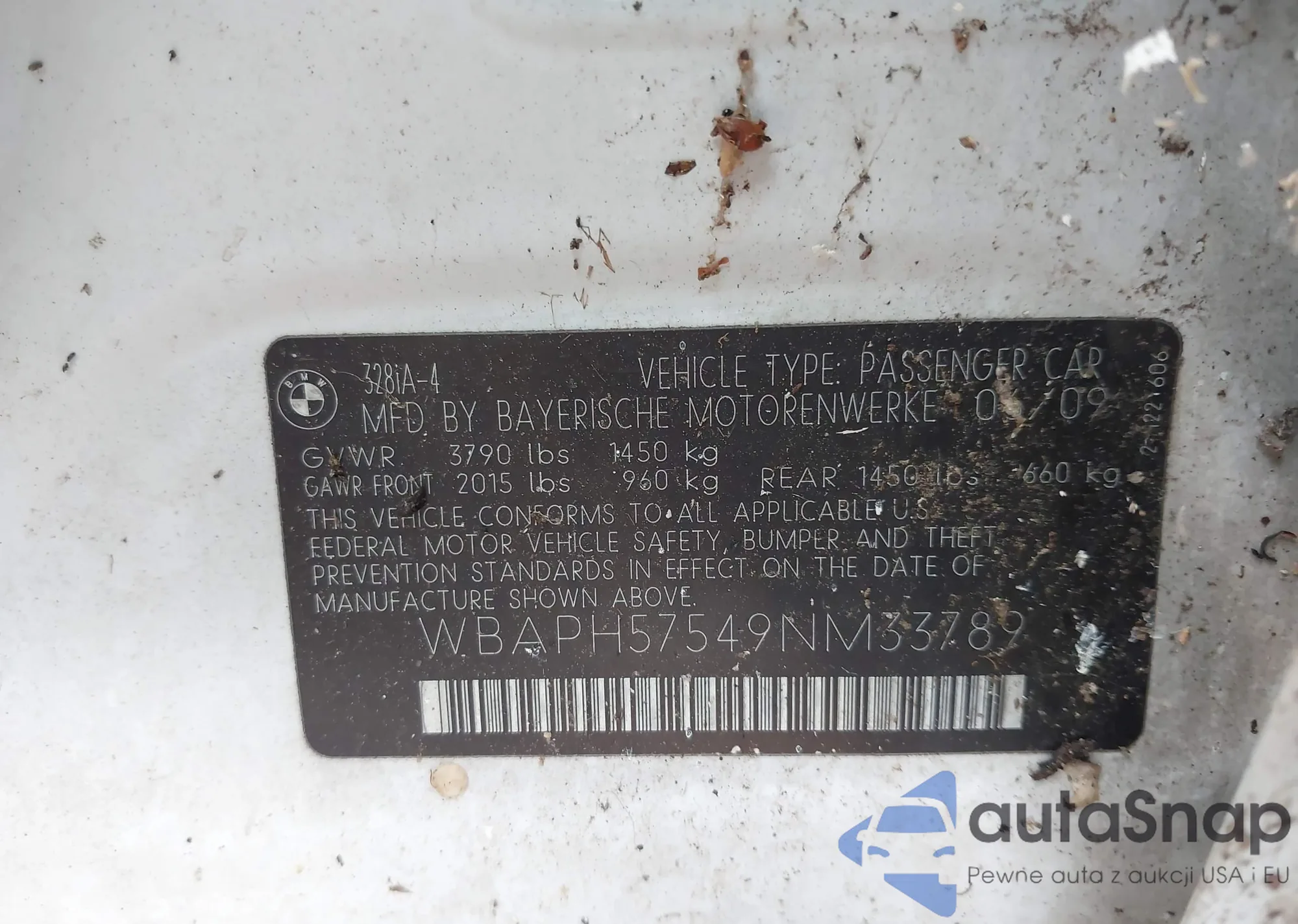 LOT: 42967860 VIN: WBAPH57549NM33789