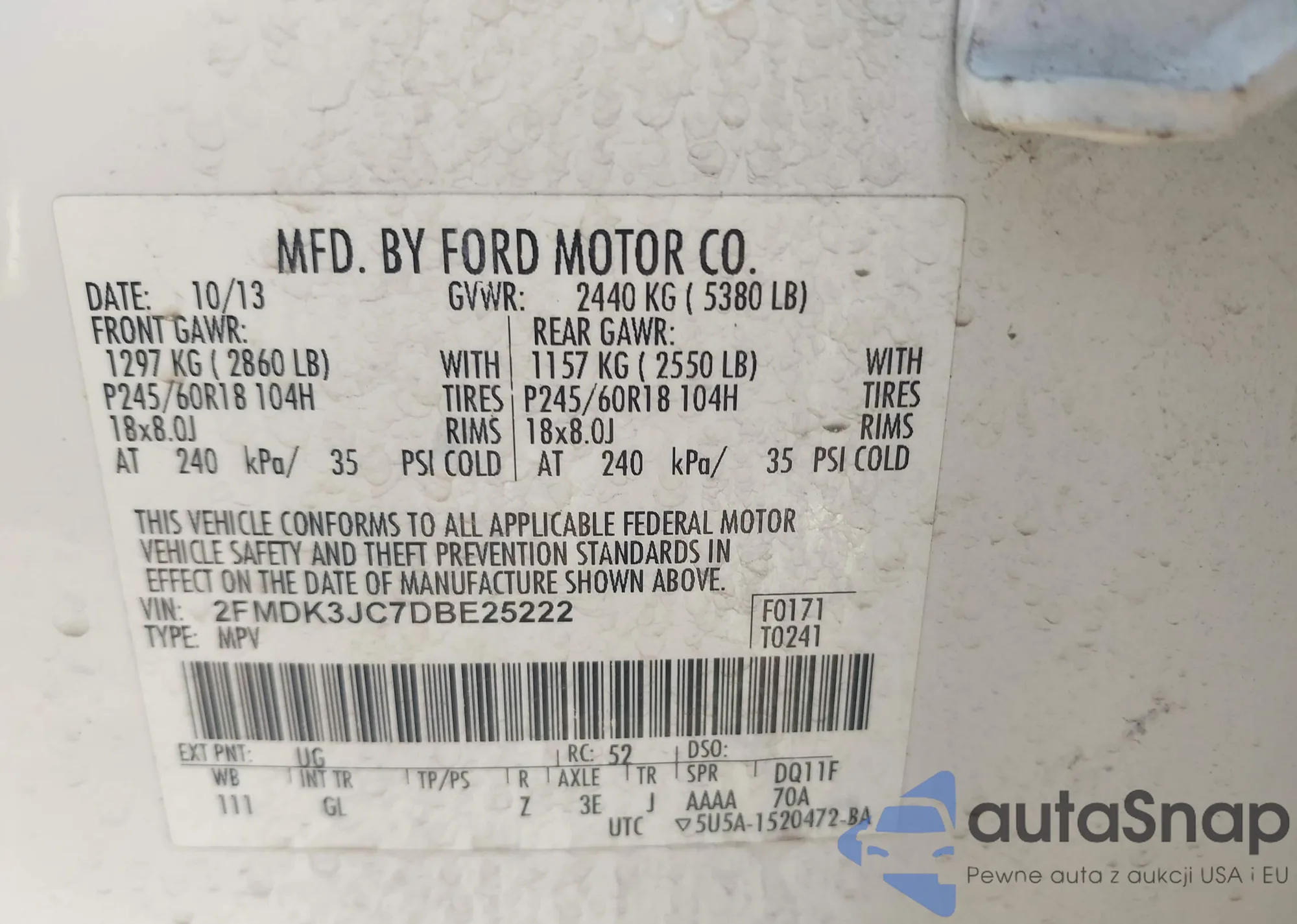 LOT: 43533462 VIN: 1FMCU03729KA03800