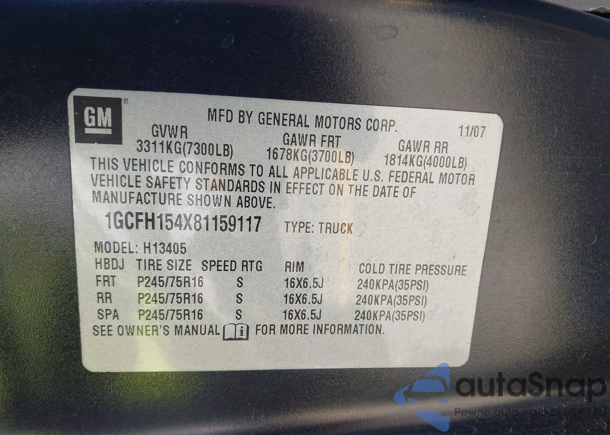 LOT: 43514204 VIN: 1GCFH154X81159117