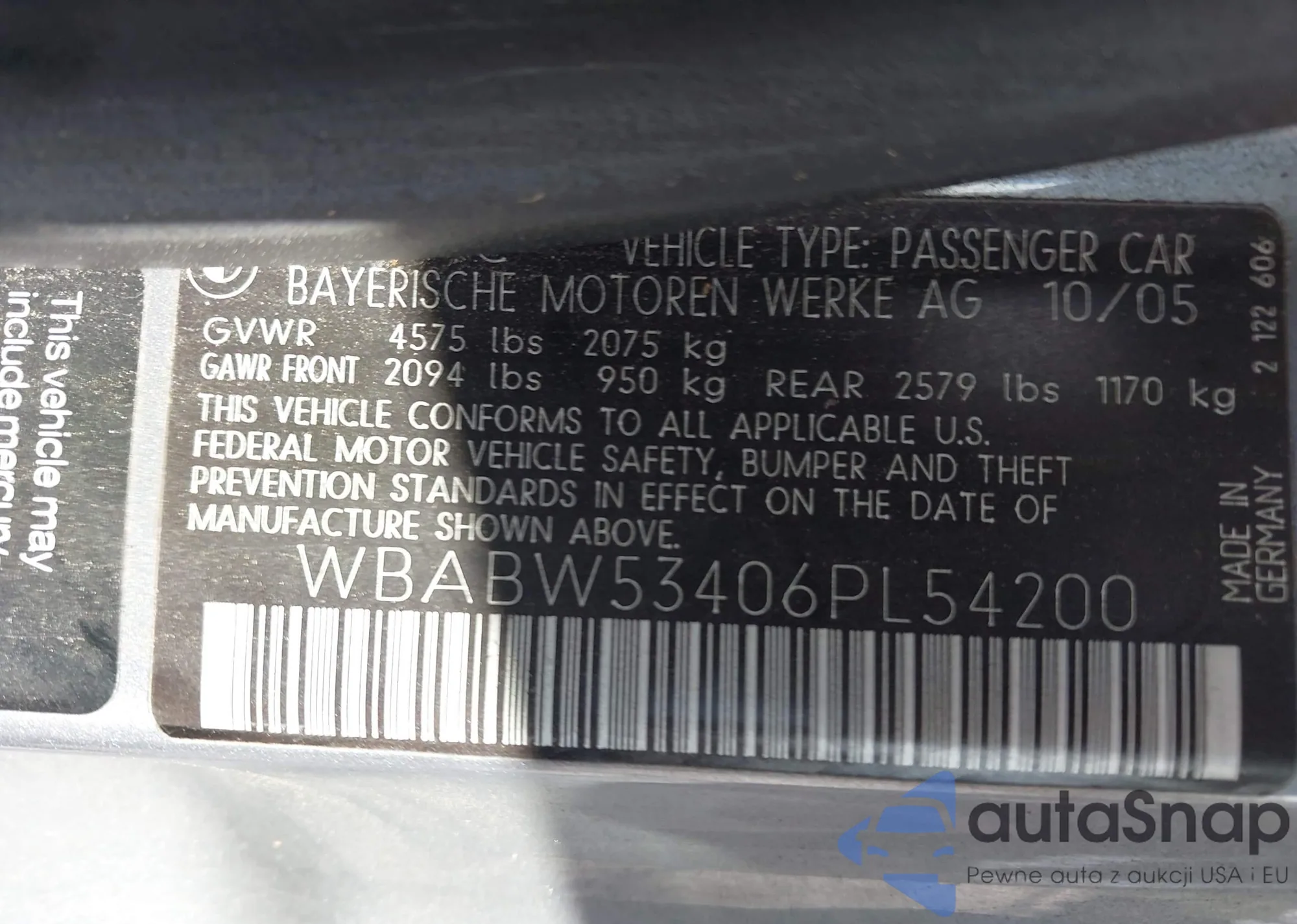 • VIN WBABW53406PL54200