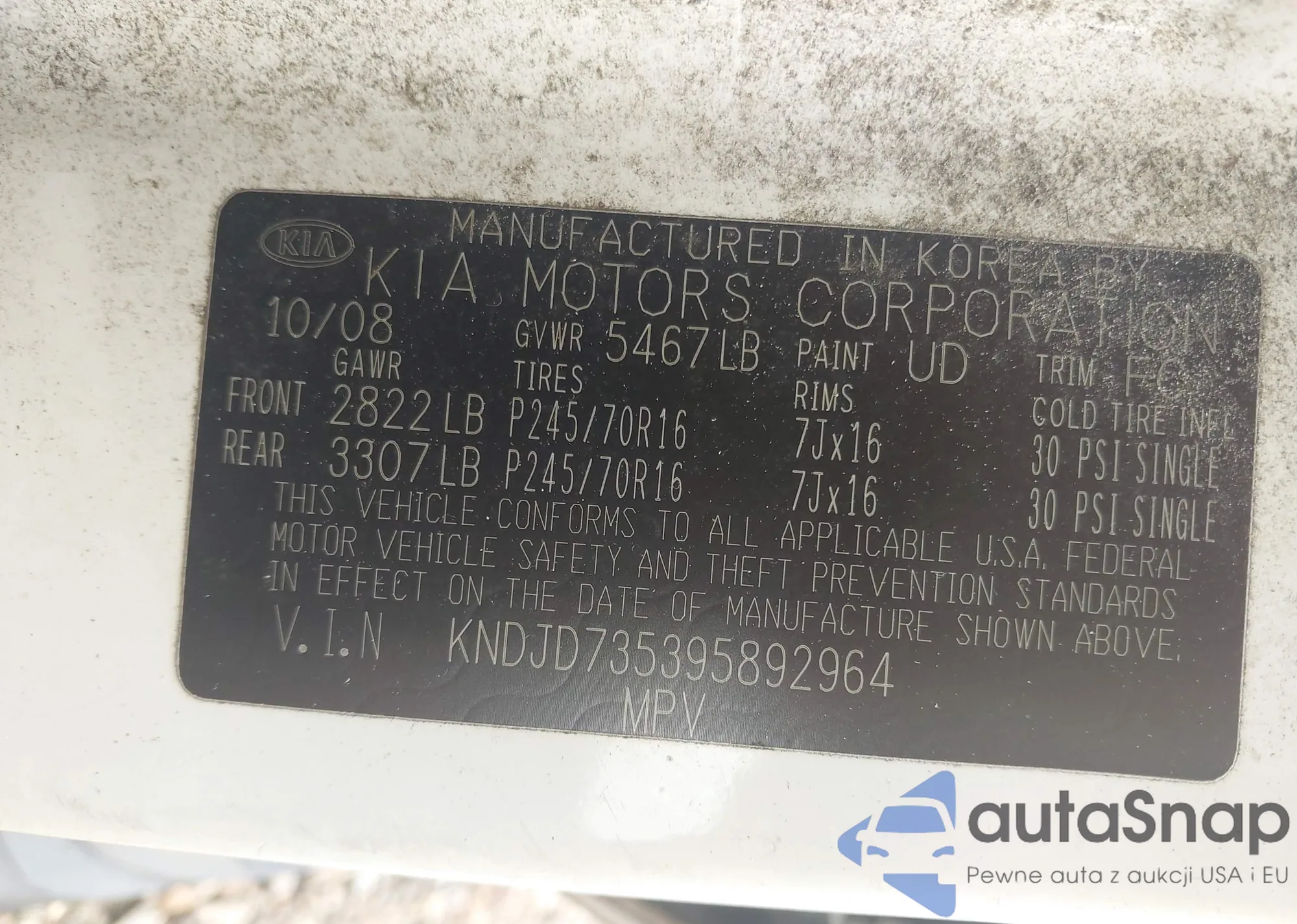 LOT: 43174629 VIN: KNDJD735395892964