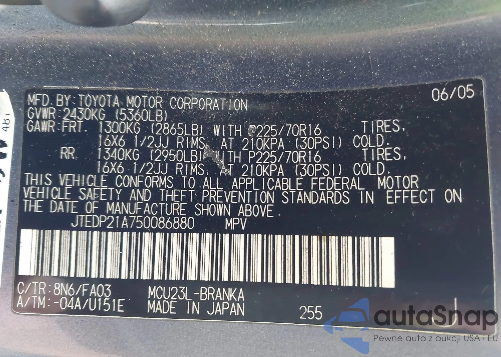 LOT: 43481322 VIN: JTDACACU9S3040420