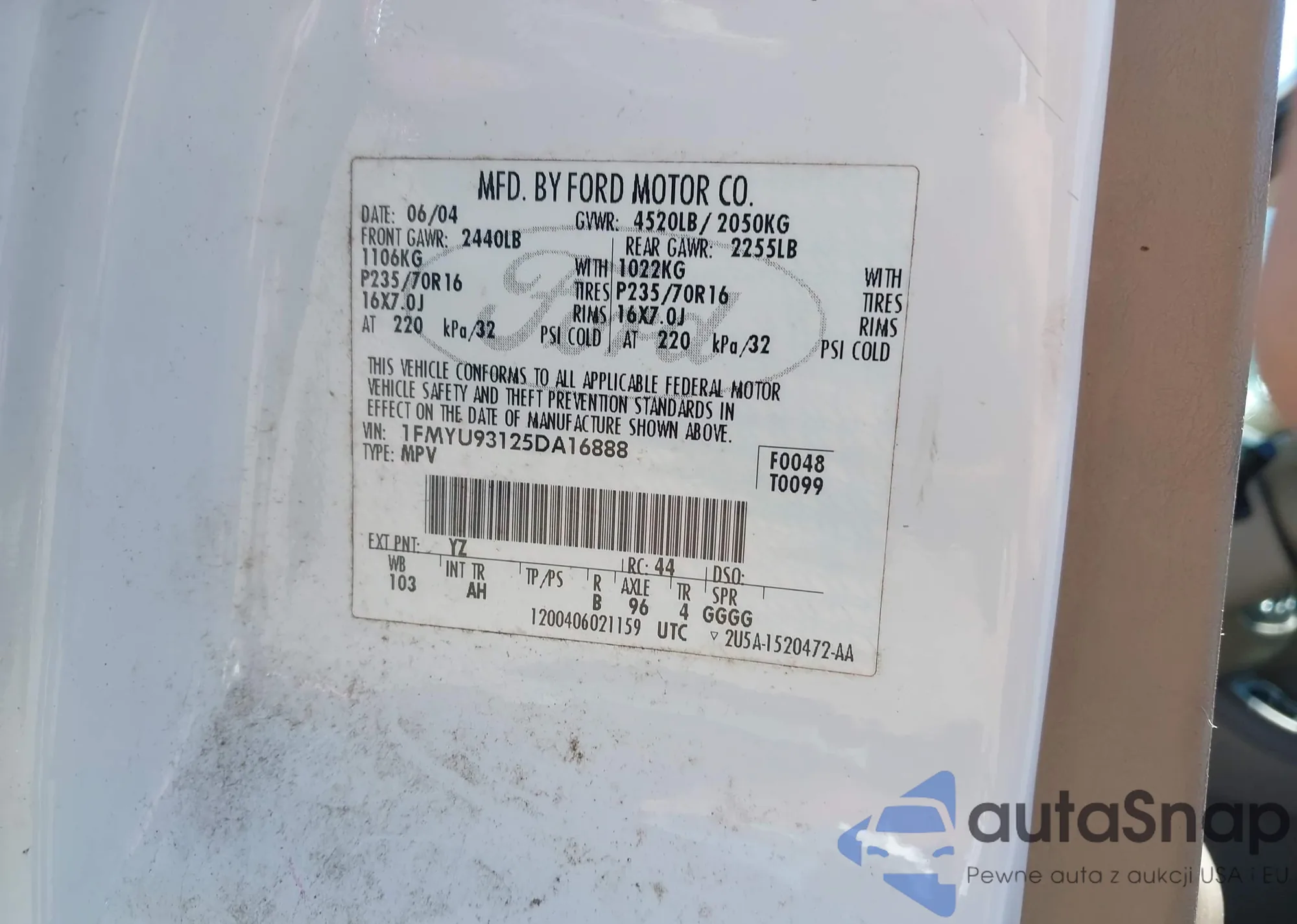 • VIN 1Y1SK5285WZ437270