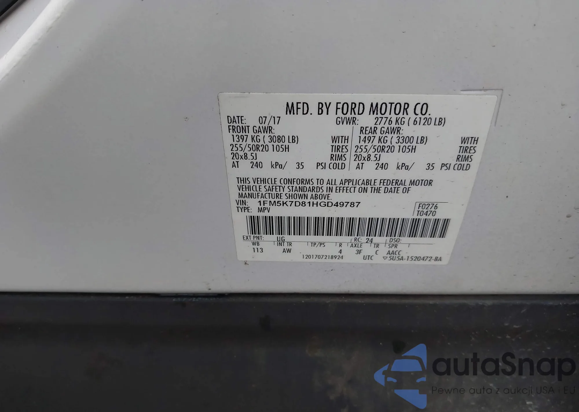 • VIN 1FM5K7D81HGD49787