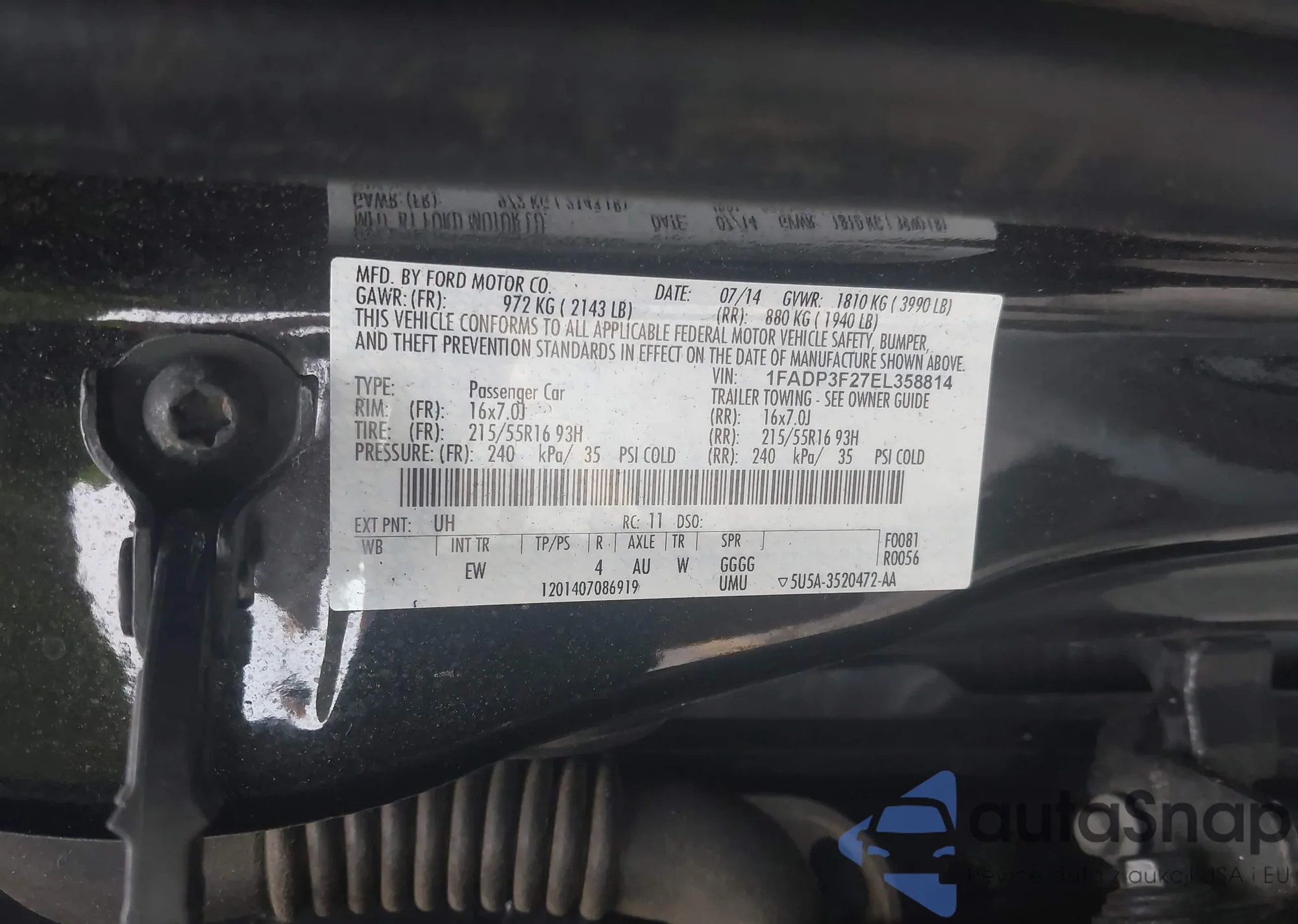 LOT: 43307455 VIN: 1FADP3F27EL358814