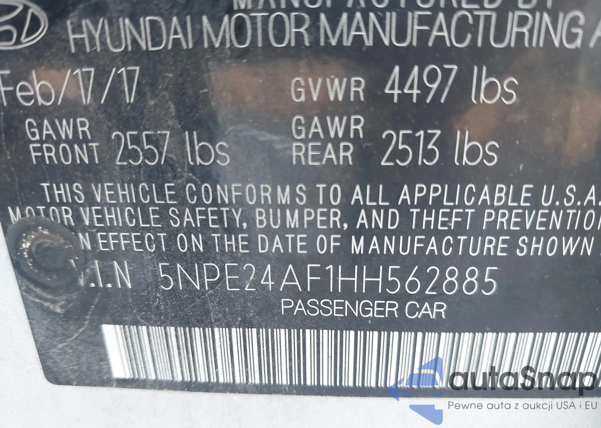 • VIN 5NPE24AF1HH562885