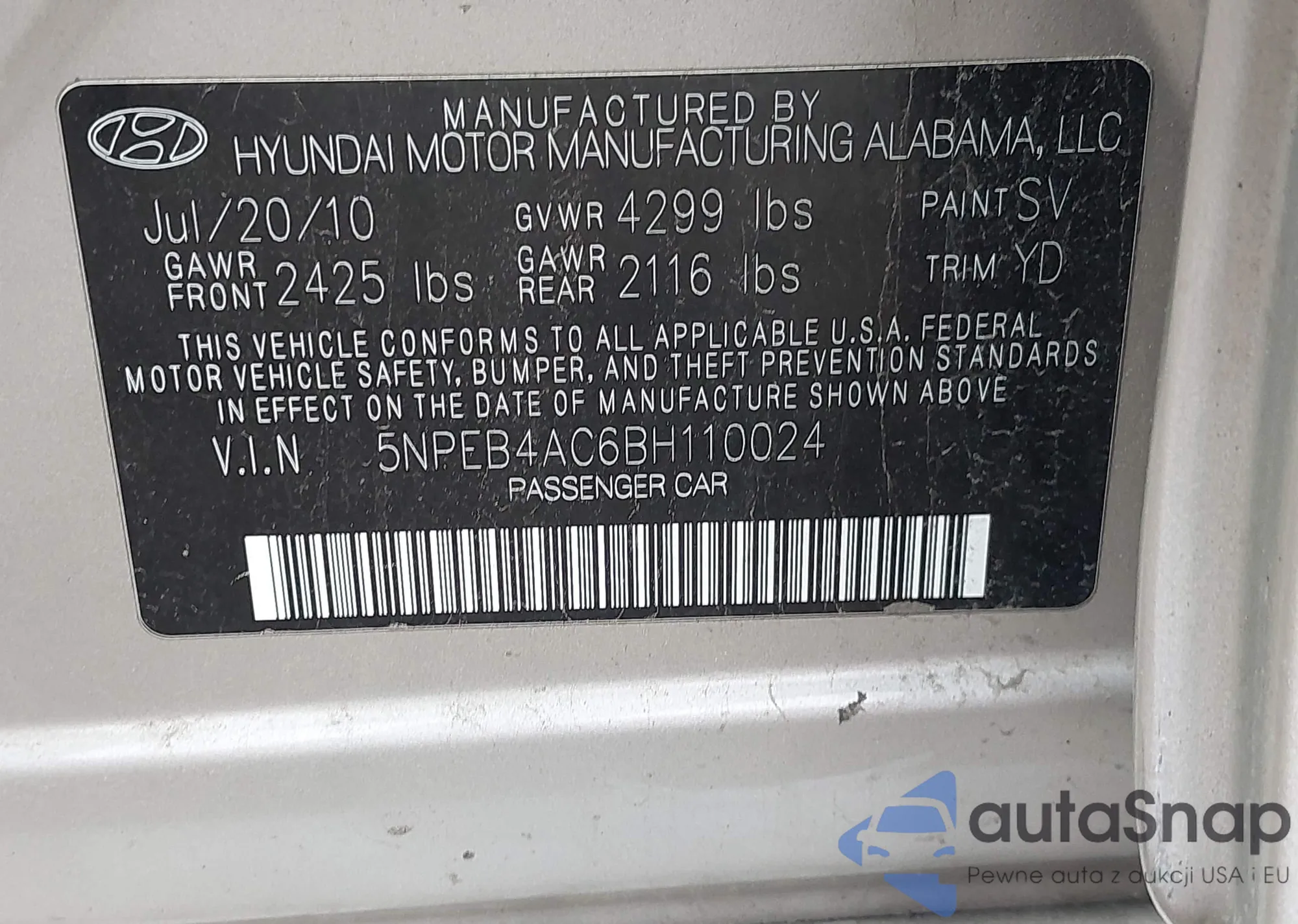 • VIN 5NPEB4AC6BH110024