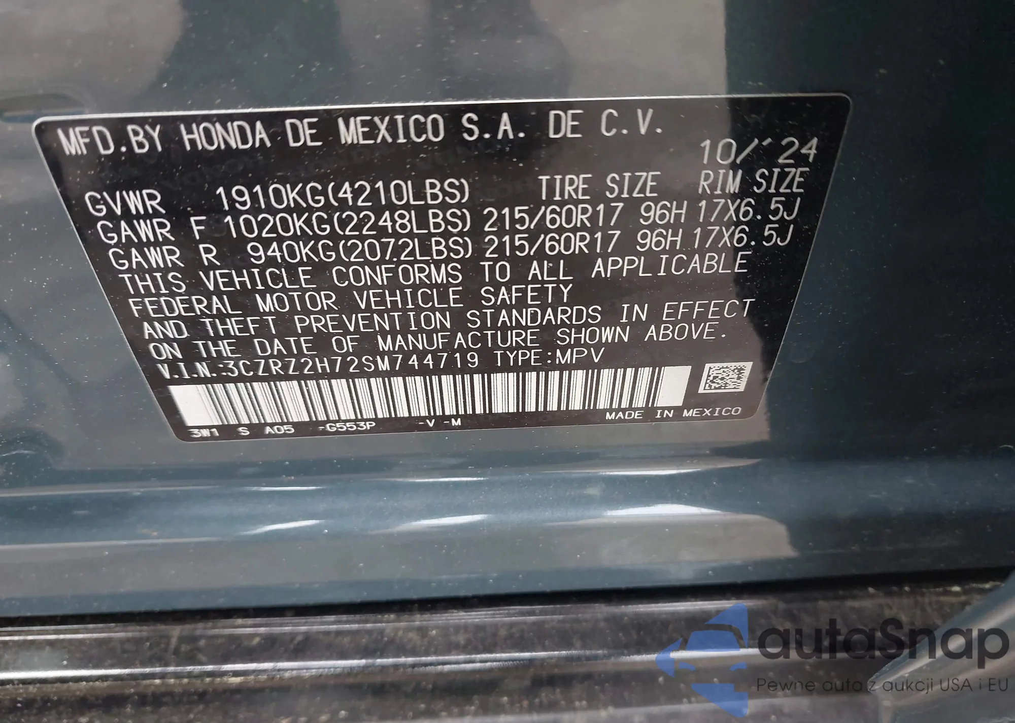 • VIN 3CZRZ2H72SM744719