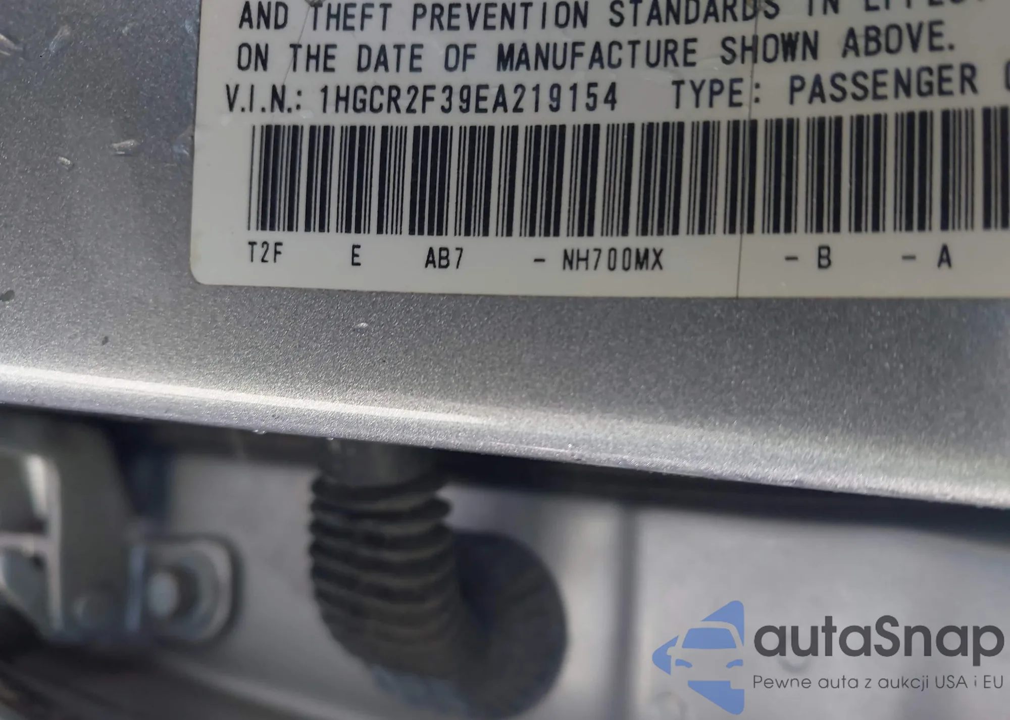 LOT: 43489002 VIN: 1HGCR2F39EA219154