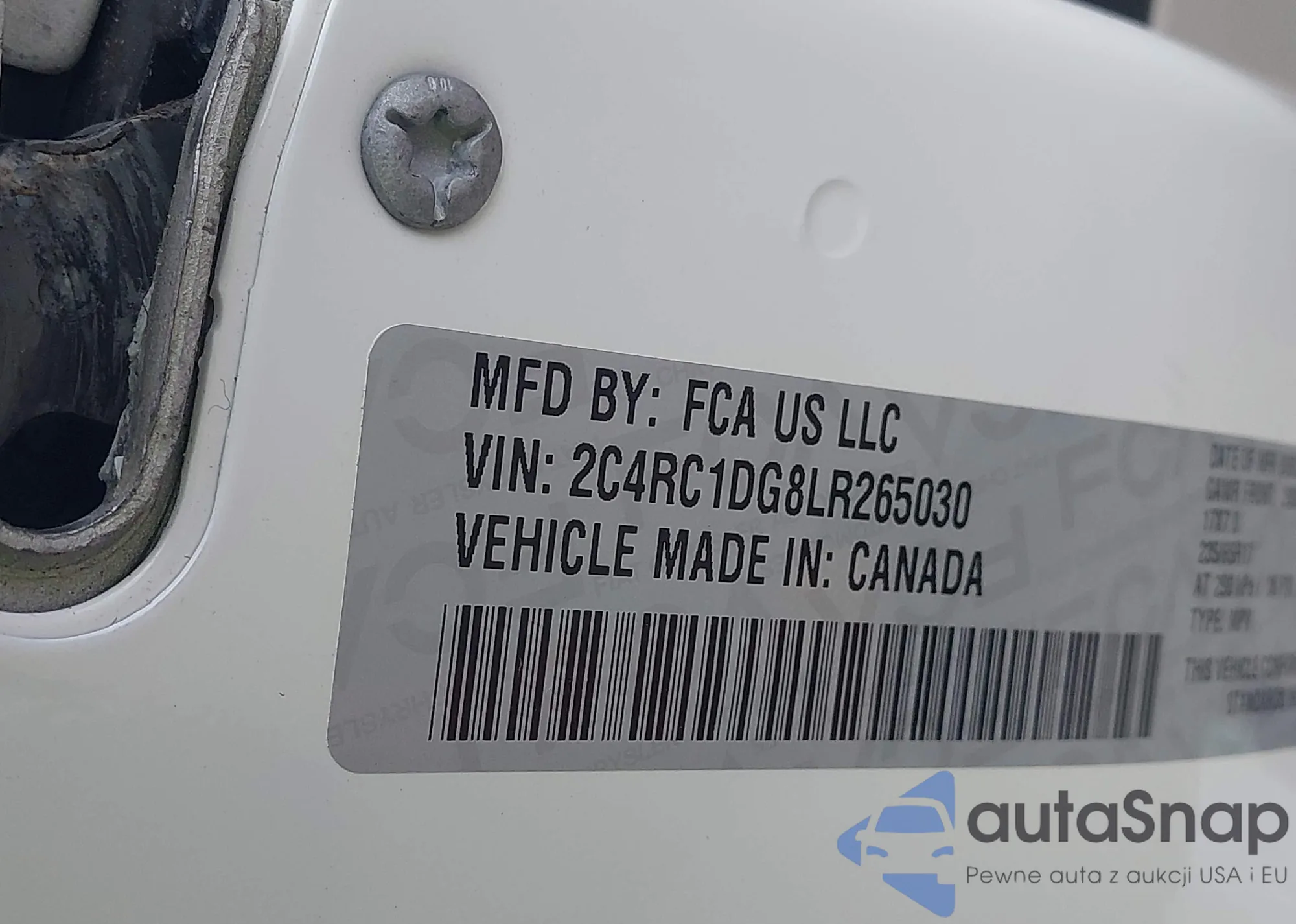 • VIN 2C4RC1DG8LR265030