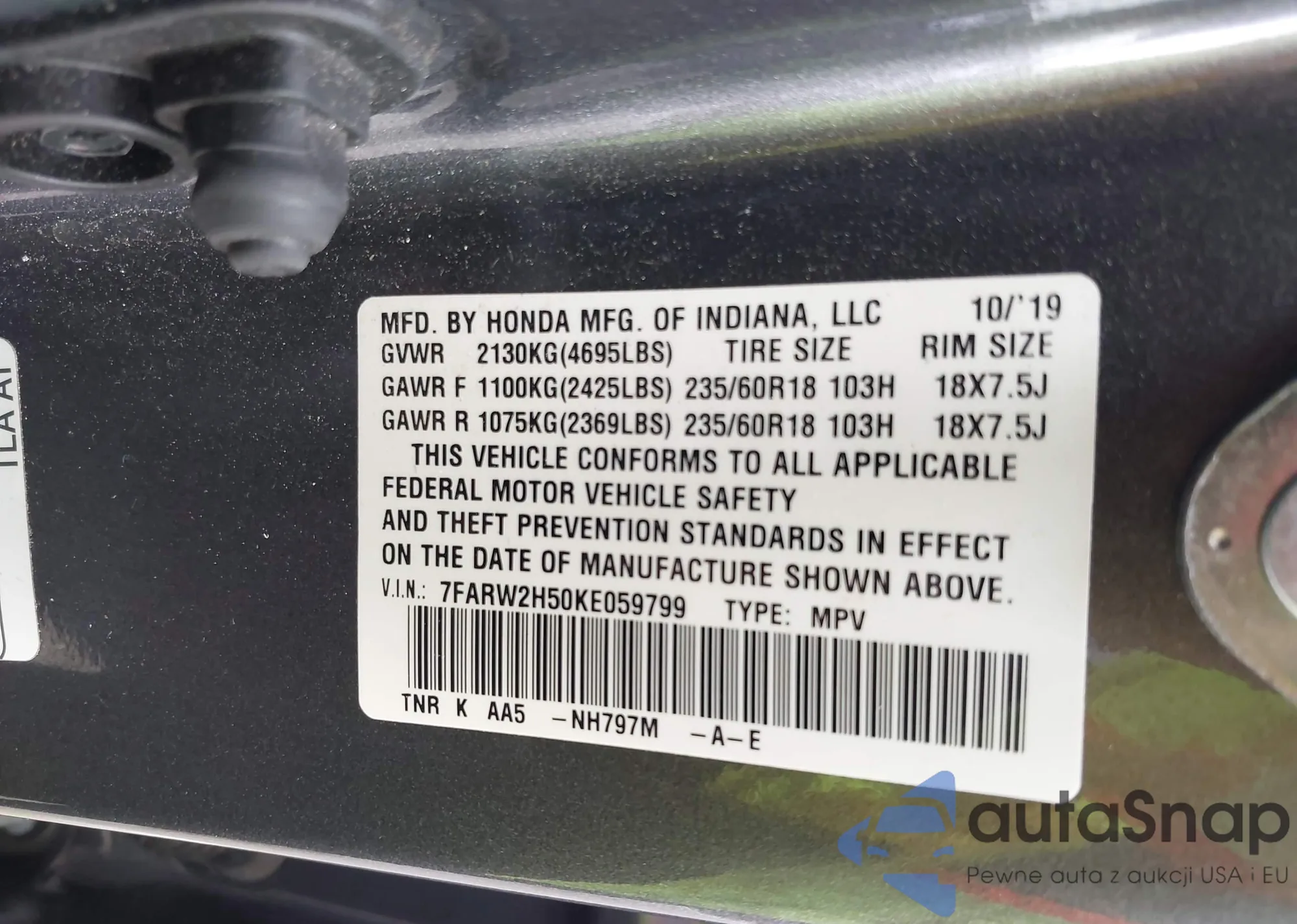 • VIN 7FARW2H50KE059799