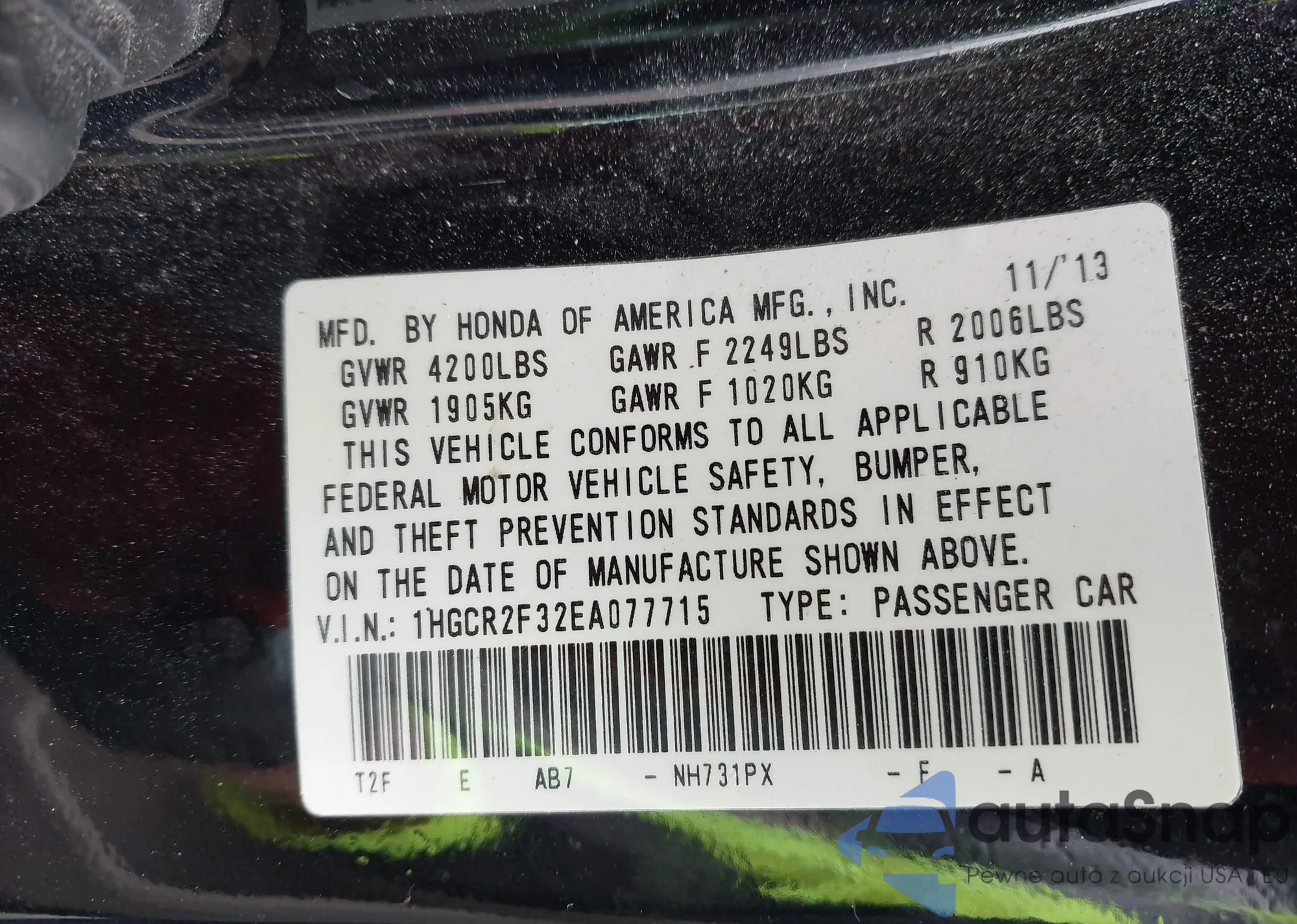 • VIN 1HGCR2F32EA077715
