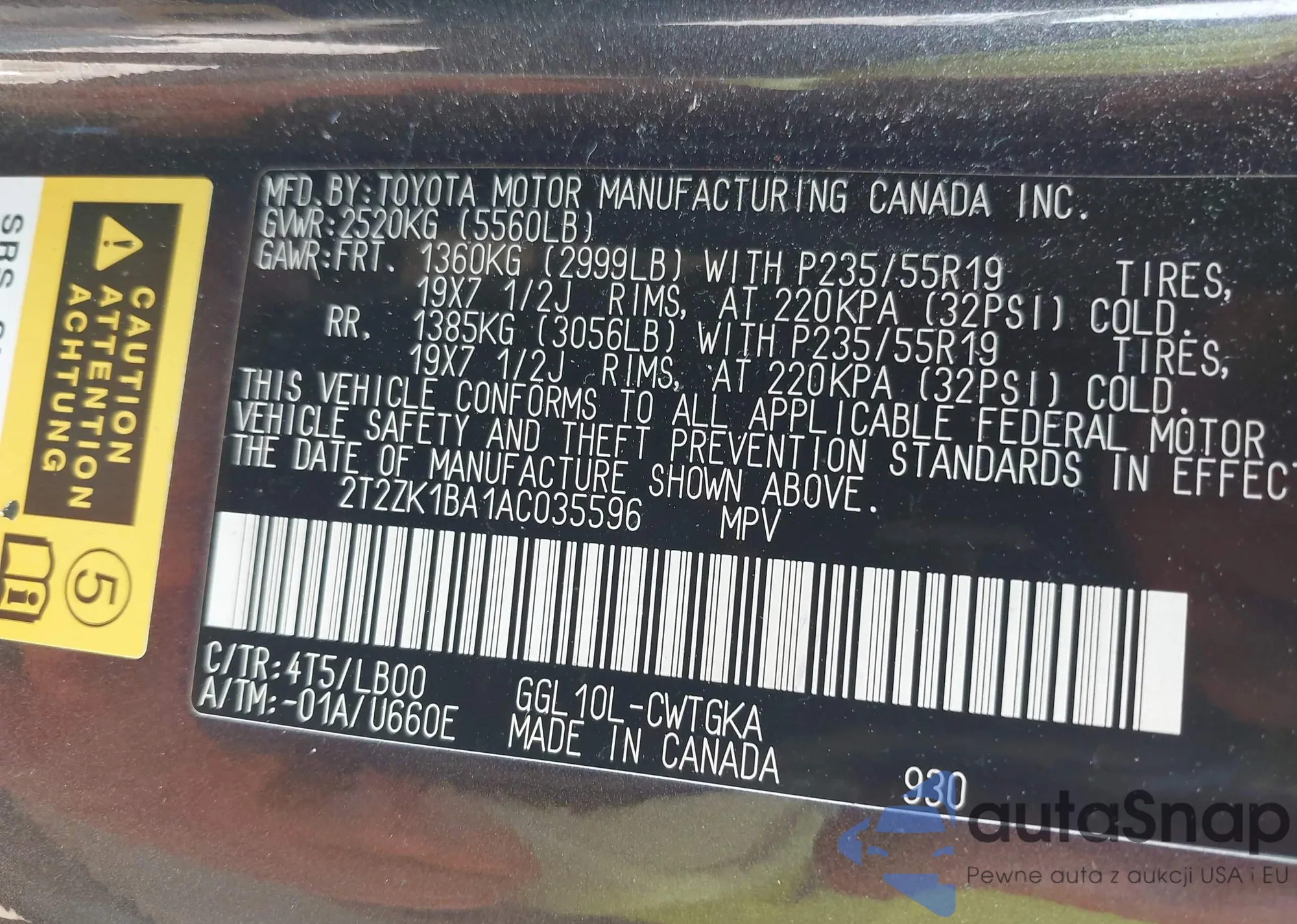 • VIN NMTKHMBX5JR005890