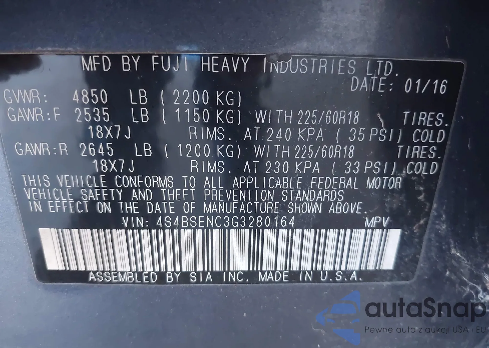 • VIN 4S4BSENC3G3280164