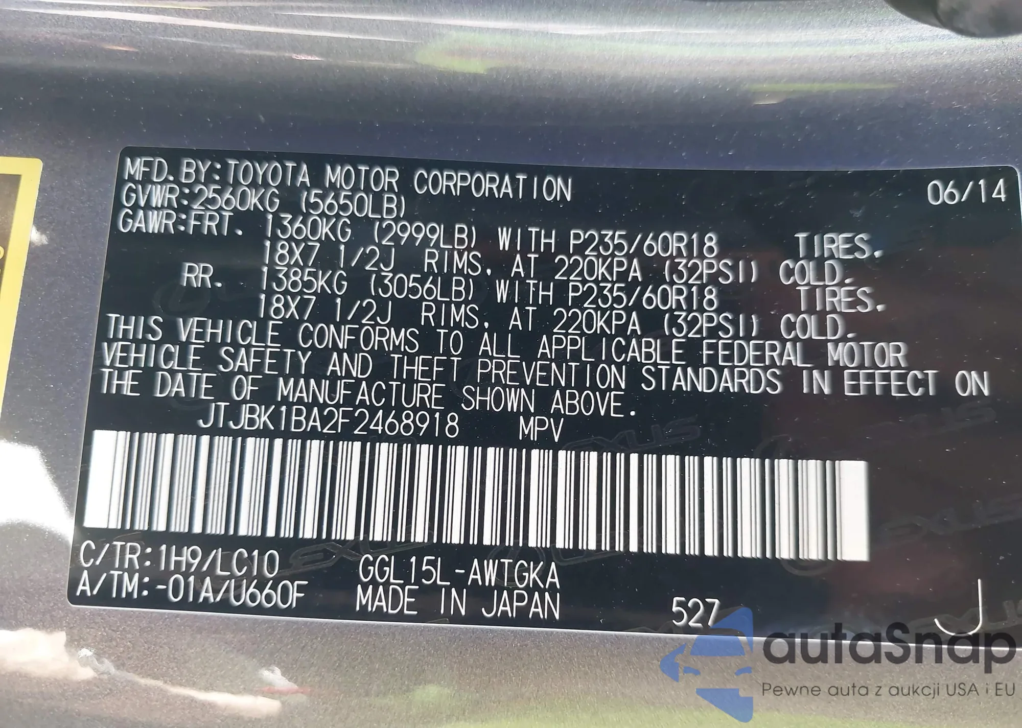 • VIN JTJBK1BA2F2468918