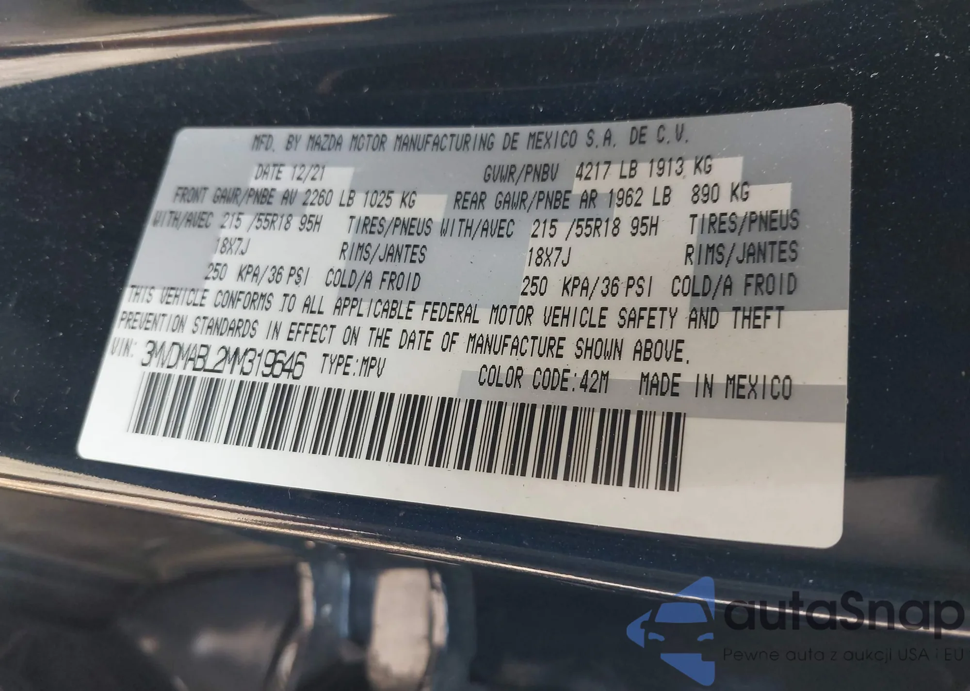 LOT: 43272966 VIN: 3MVDMABL2MM319646