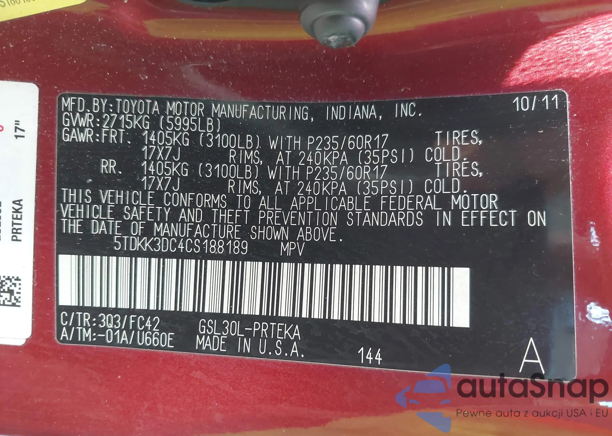 • VIN 5TDKK3DC4CS188189