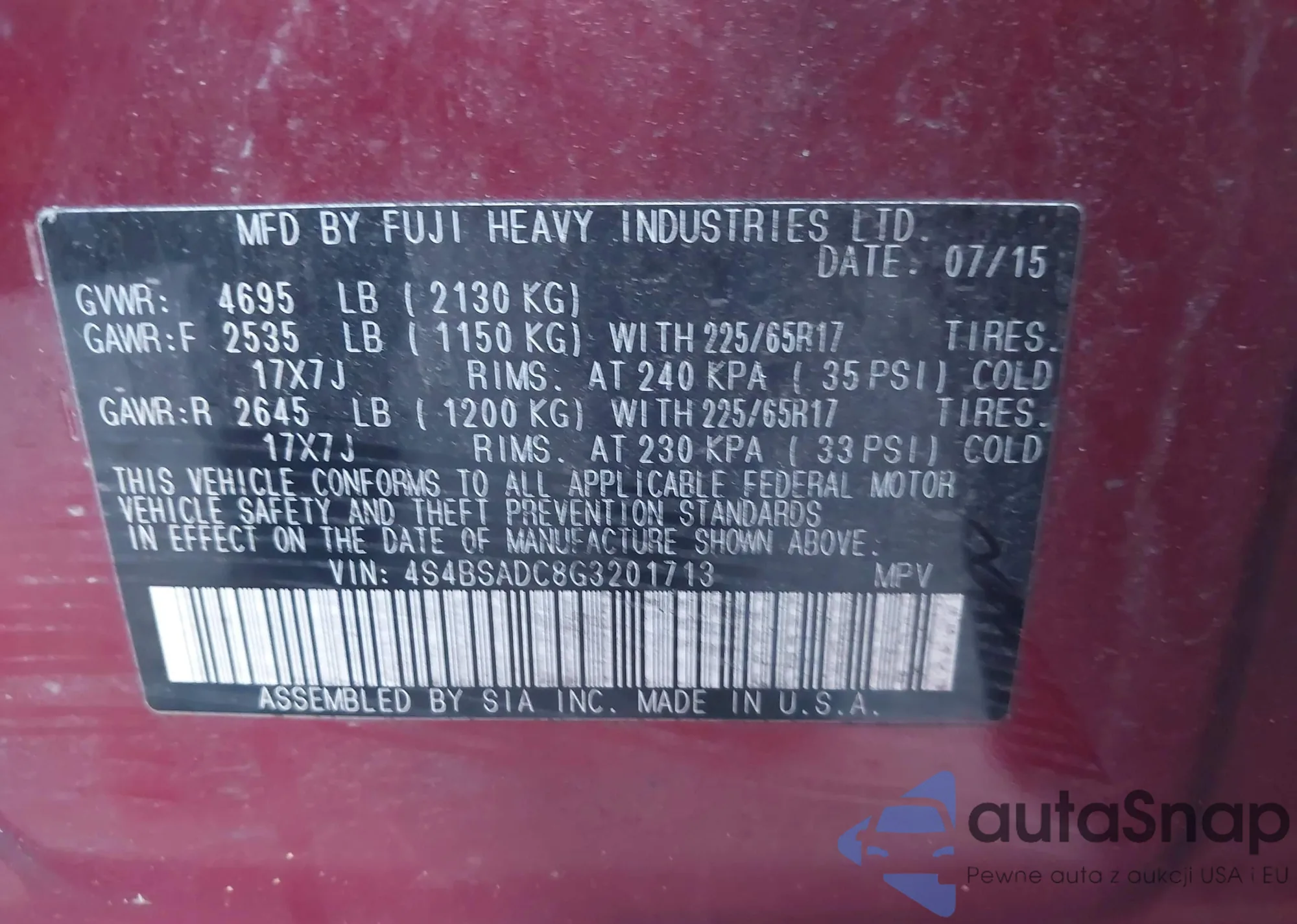 • VIN 4S4BSADC8G3201713