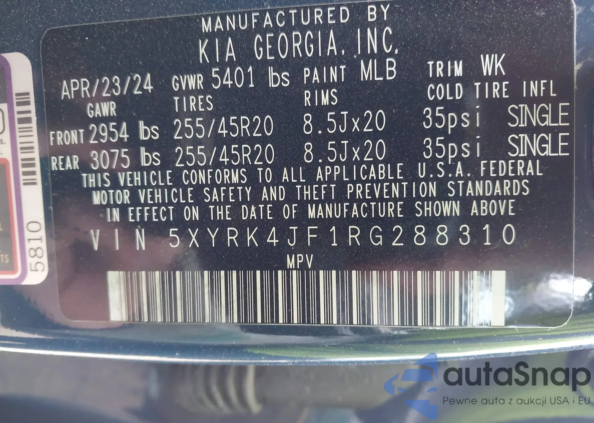 2024 Kia Sorento Sx from USA, damaged, VIN 5XYRK4JF1RG288310