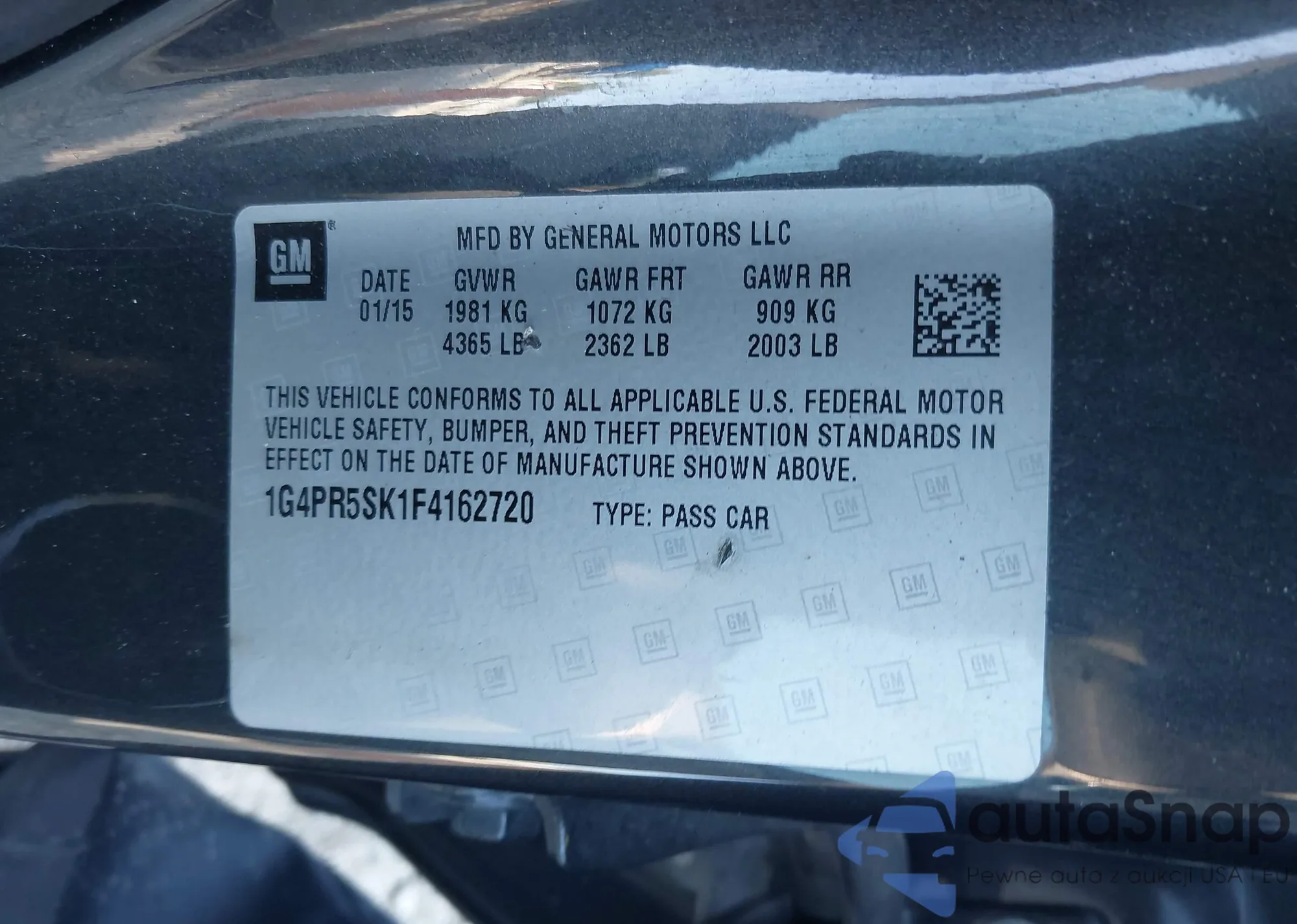 • VIN 1G4PR5SK1F4162720