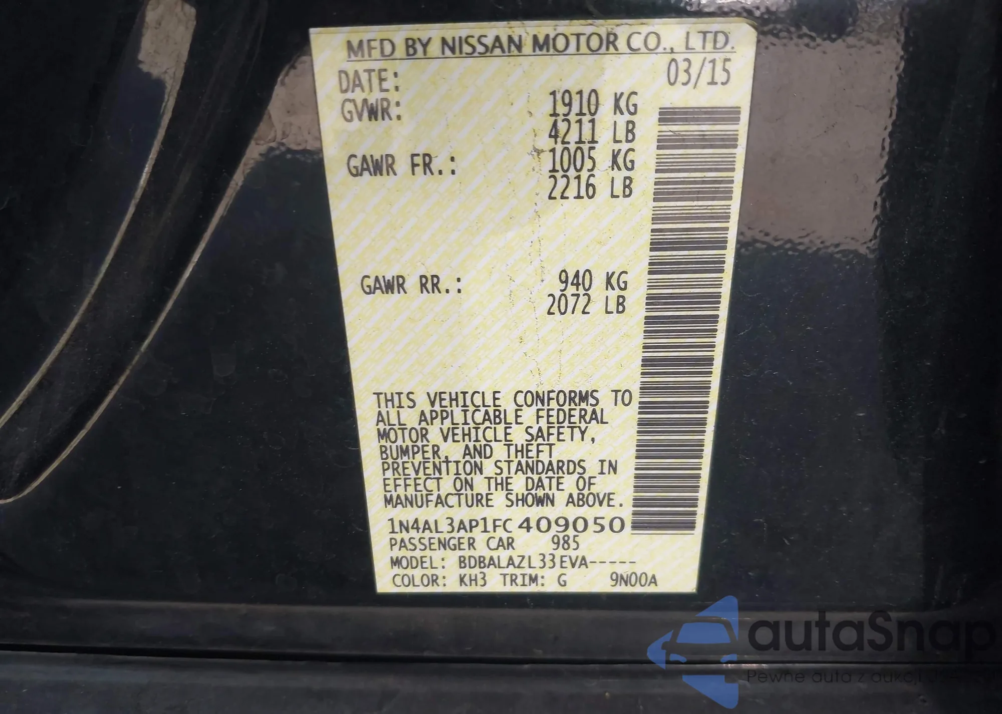 LOT: 43347863 VIN: 1N4AL3AP1FC409050