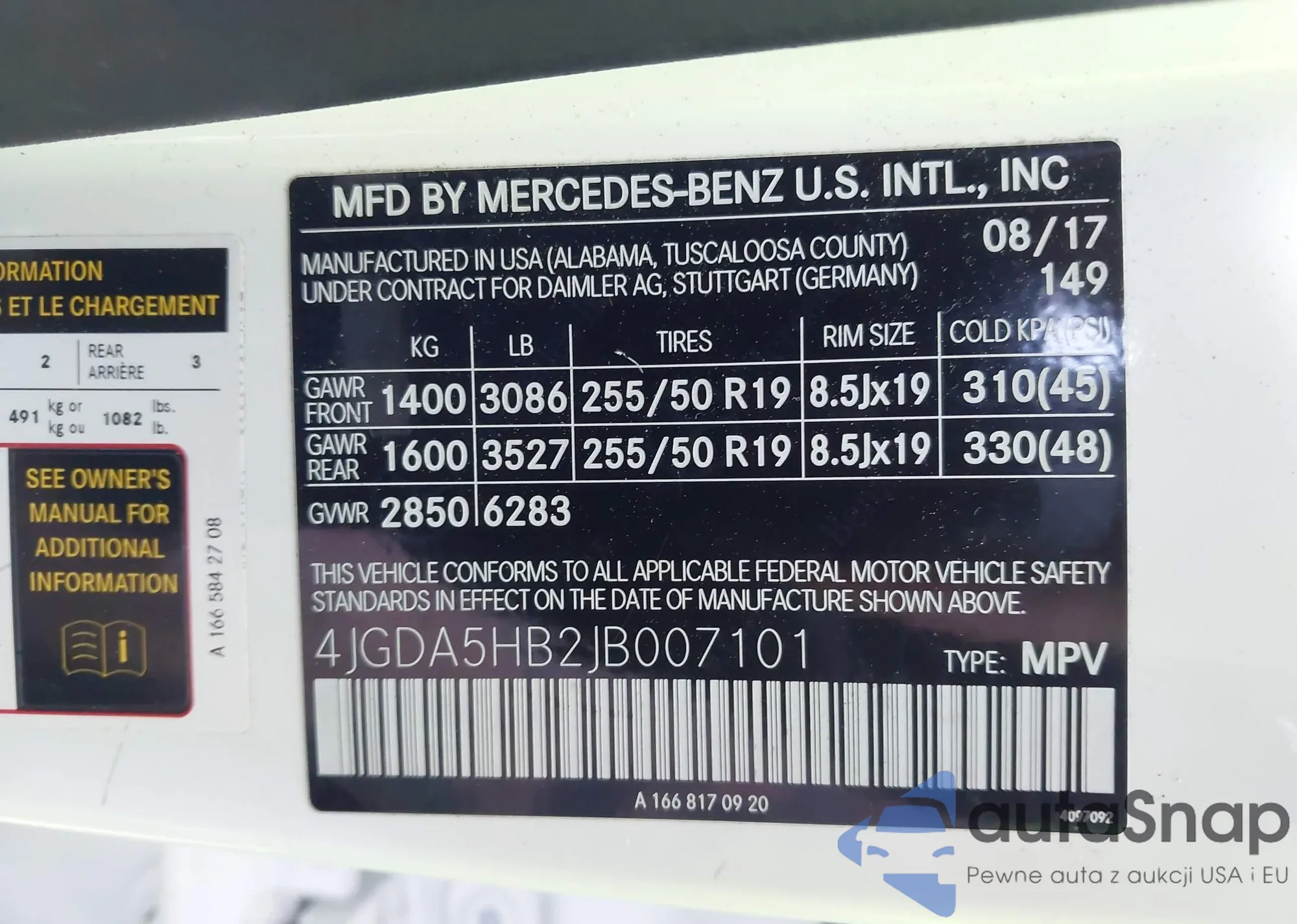 • VIN 4JGDA5HB2JB007101