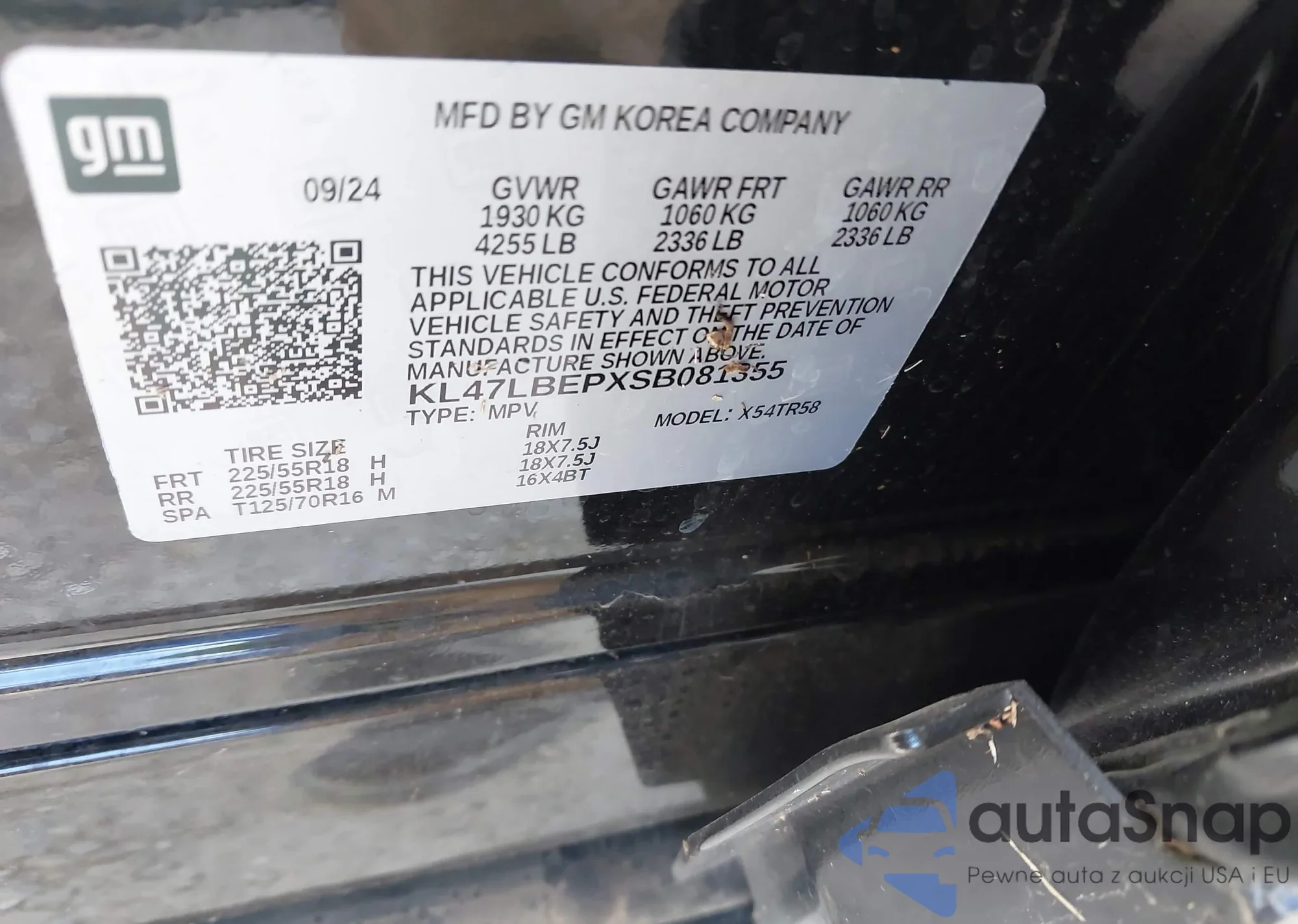 • VIN KL47LBEPXSB081355