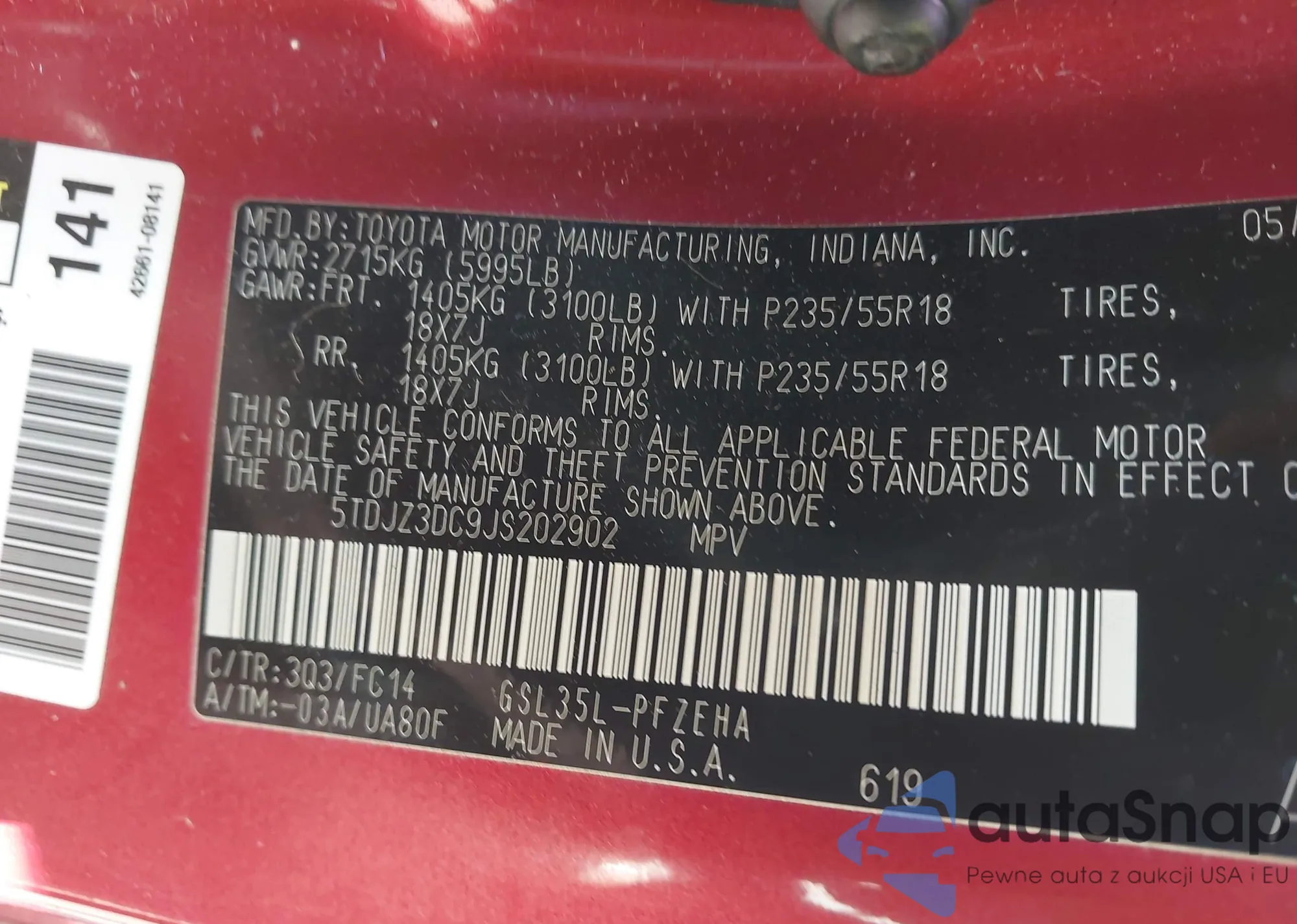 LOT: 43373131 VIN: 5TDJZ3DC9JS202902