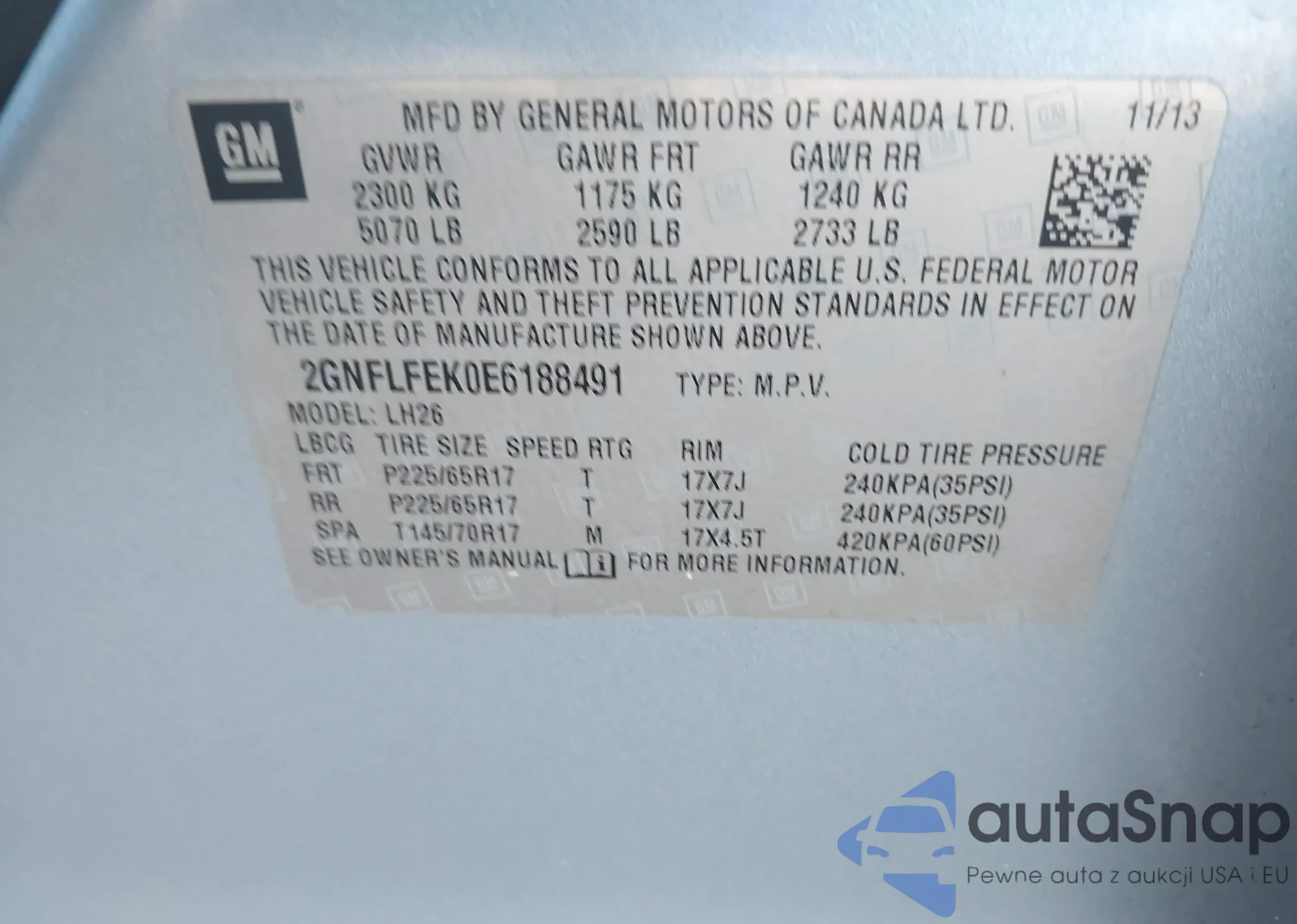 • VIN 2GNFLFEK0E6188491