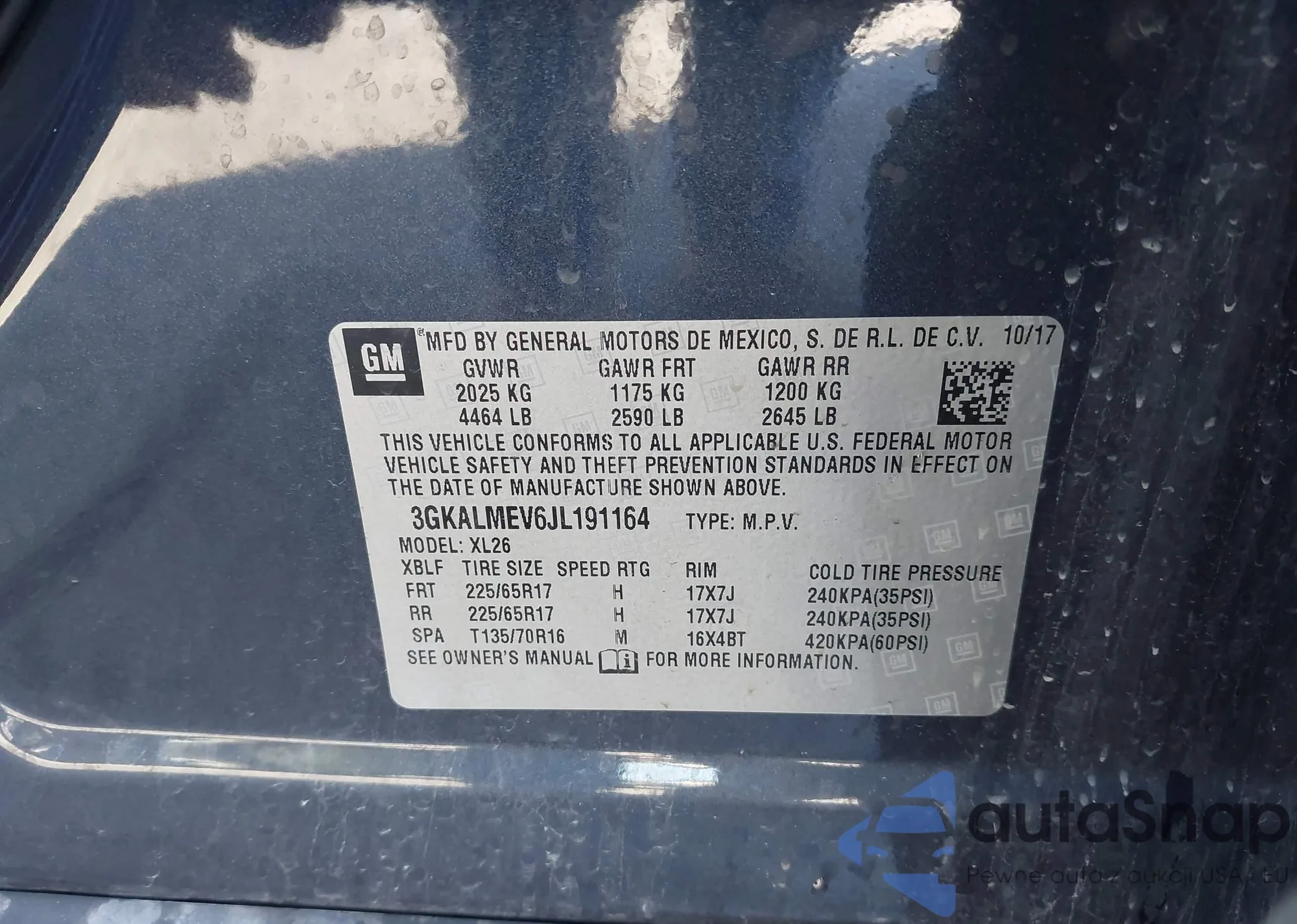 • VIN 3GKALMEV6JL191164
