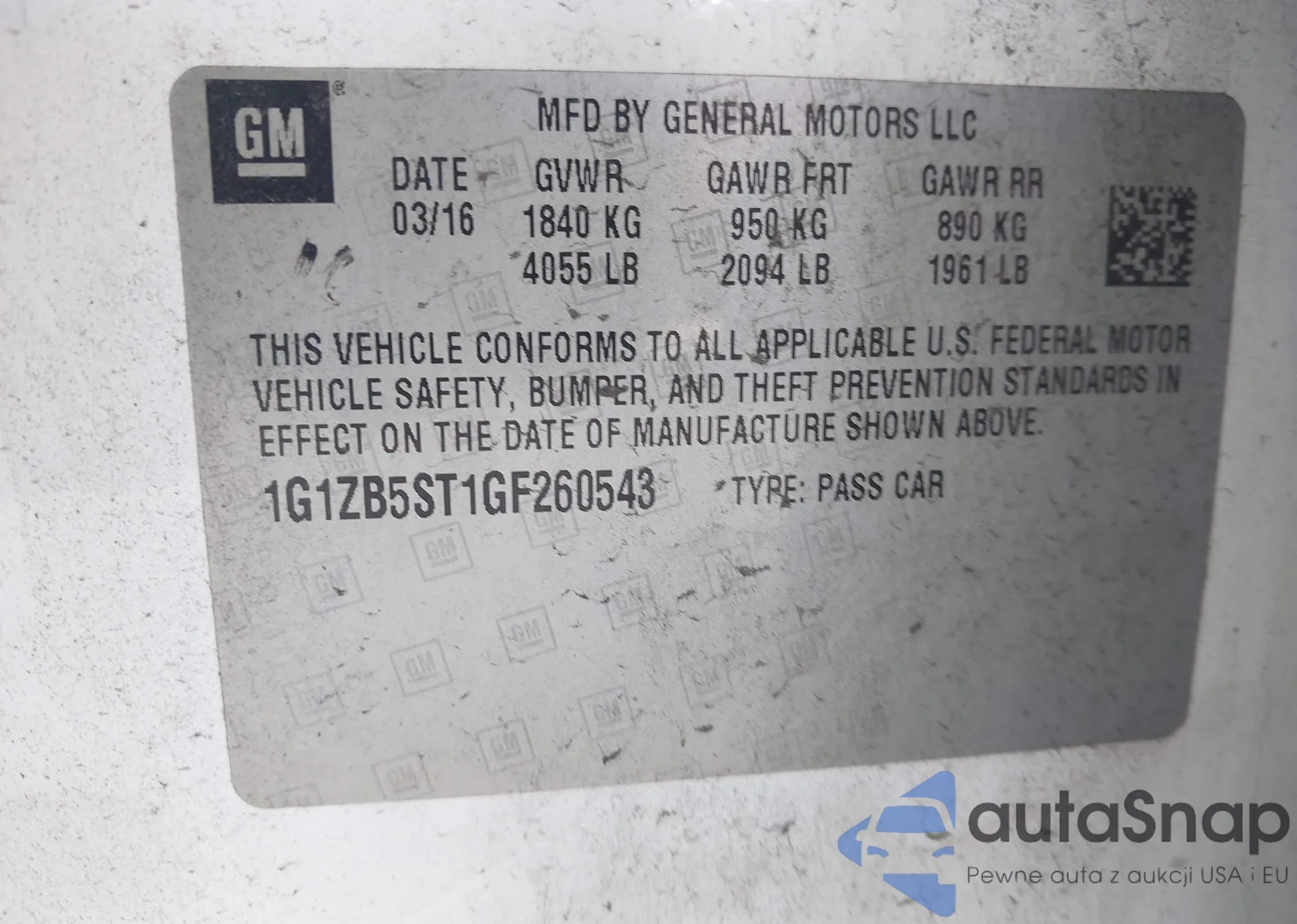 LOT: 43402984 VIN: 1G1ZB5ST1GF260543