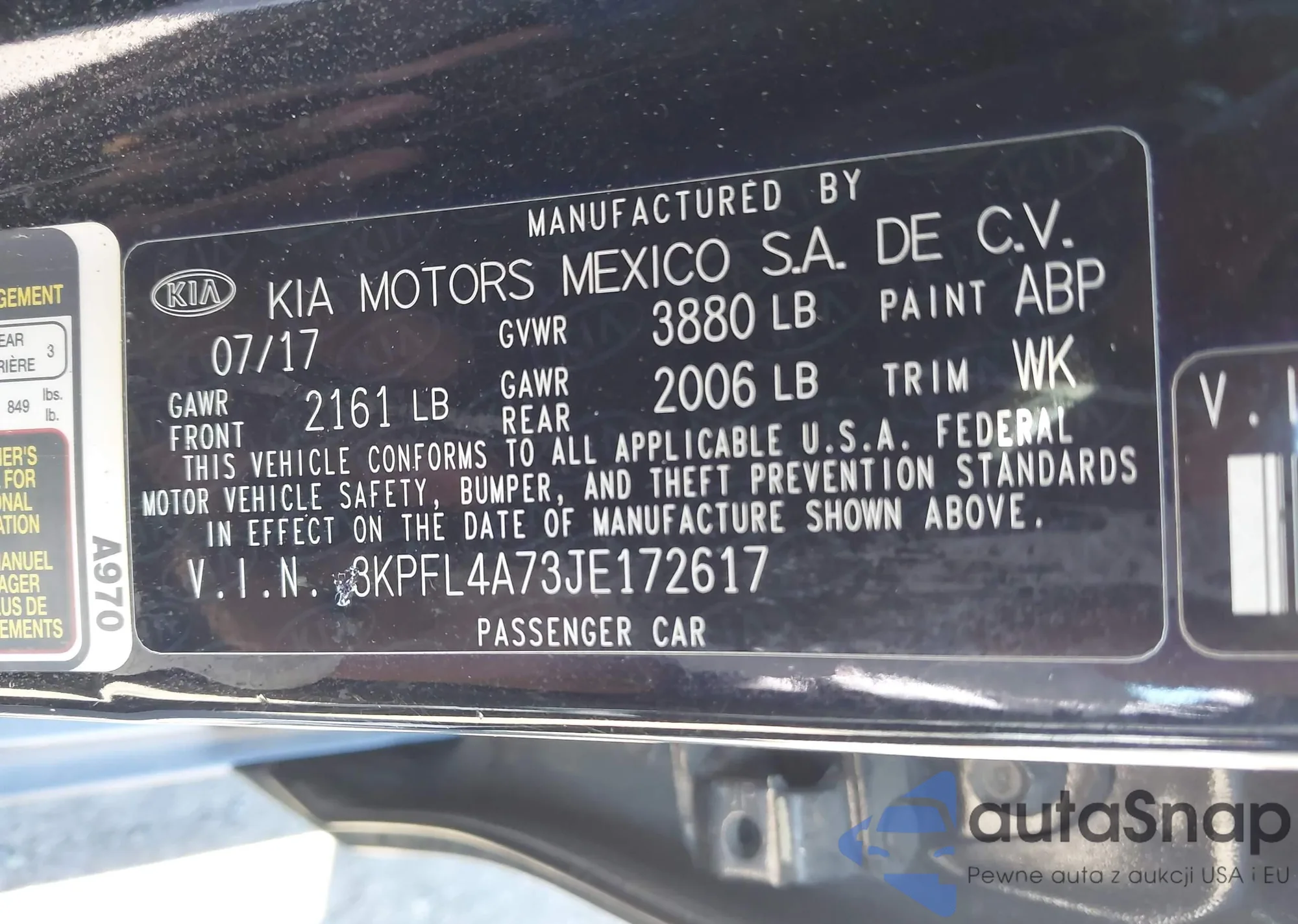 • VIN 3KPFL4A73JE172617