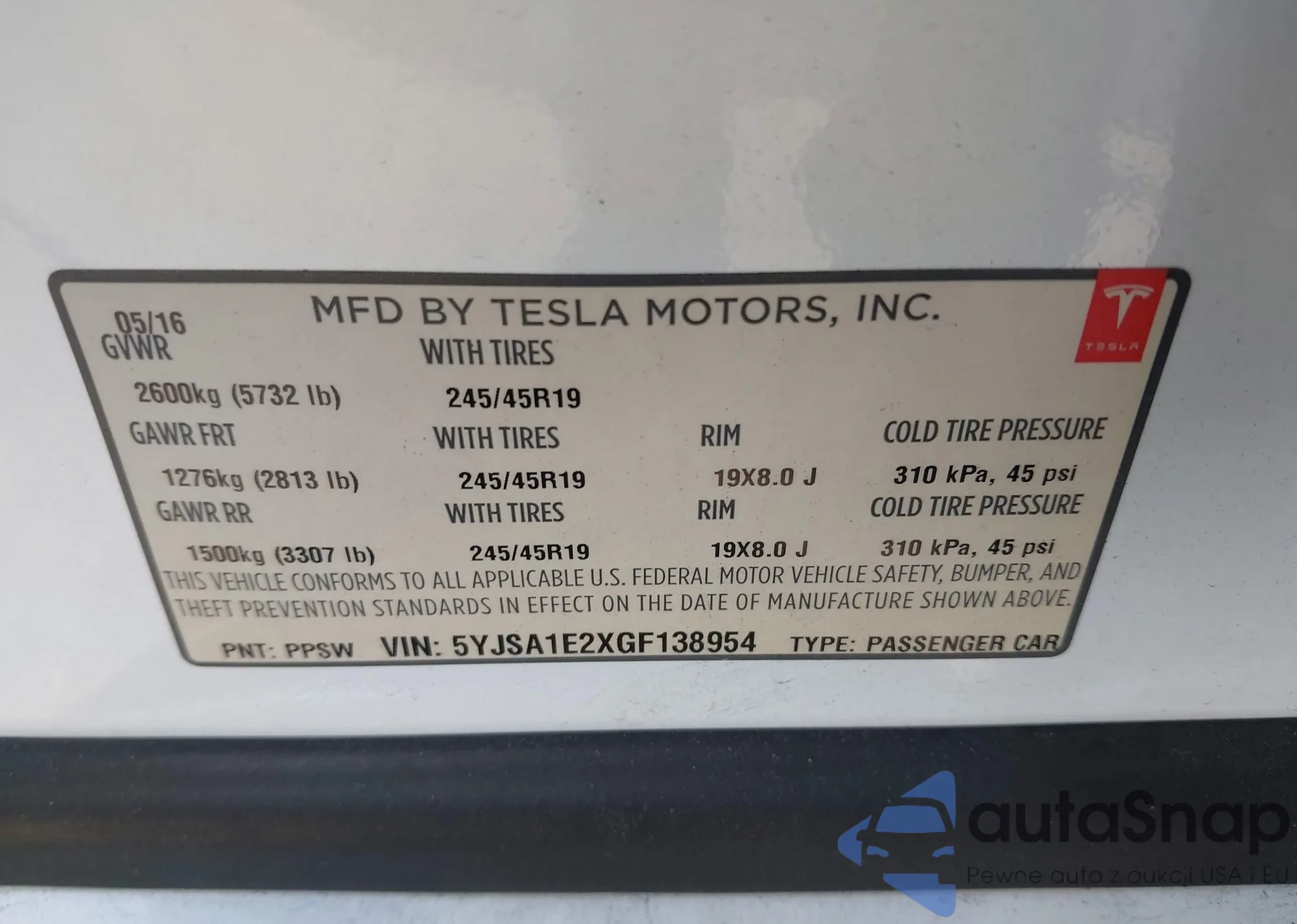 • VIN 5YJSA1E2XGF138954